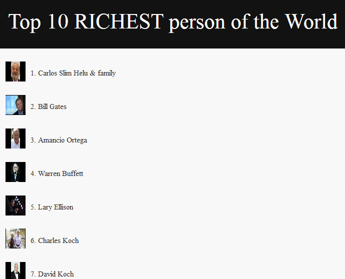 This application shows you the top ten richest person of the world. Click to view and learn about the richest persons of the world. Built With html5tizen