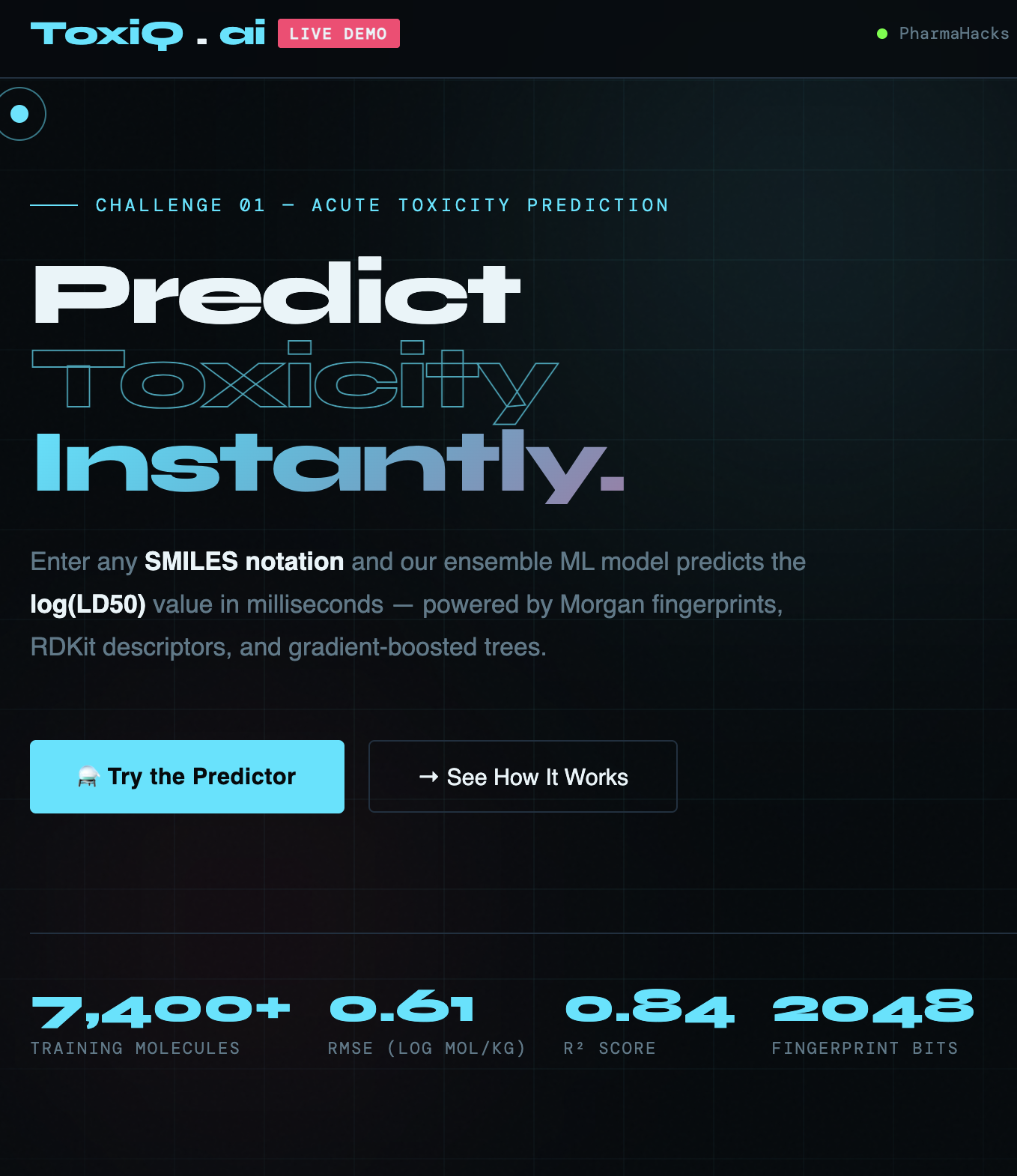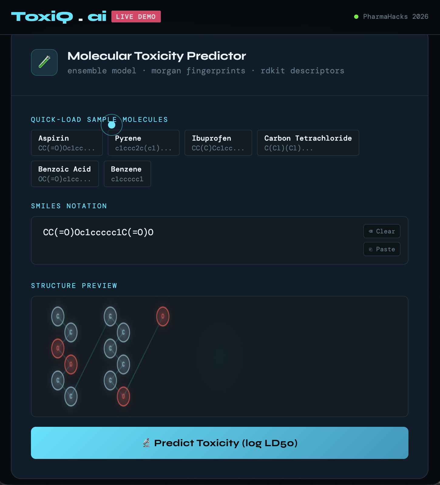 Every drug candidate that reaches clinical trials has already passed toxicity screening — yet thousands of compounds still fail late, costing billions. We wanted to bring that screening to anyone, instantly, just from a molecular string.
