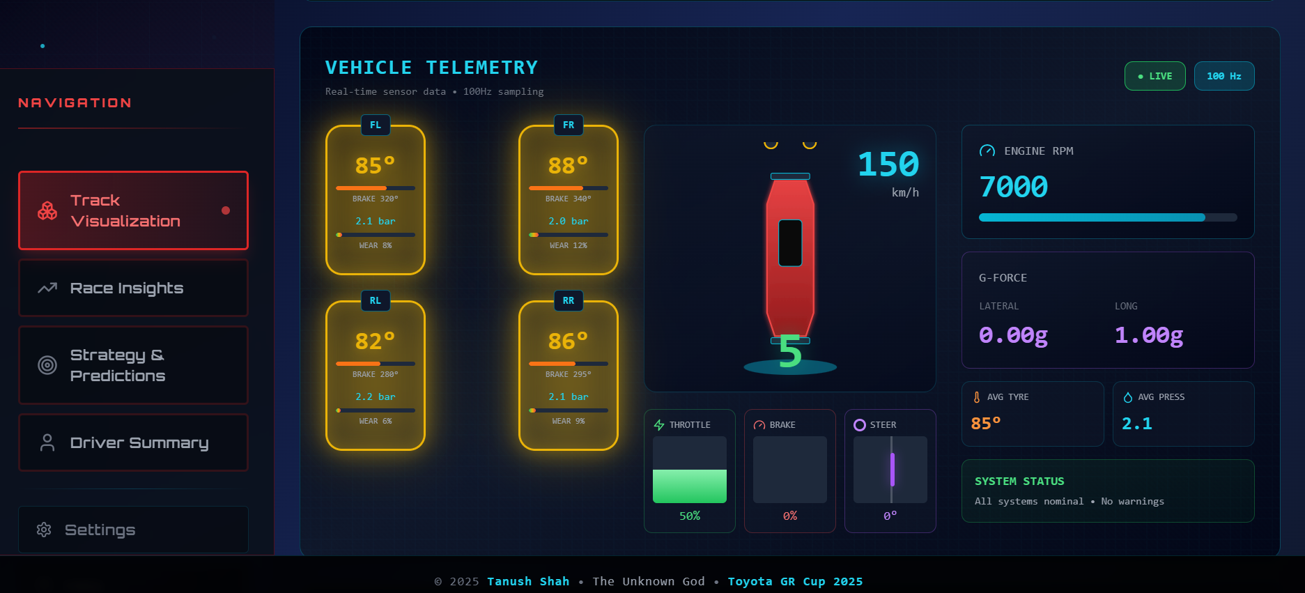 Our vision is to turn every lap into a learning opportunity and bring professional-grade telemetry intelligence to the entire Toyota GR ecosystem.