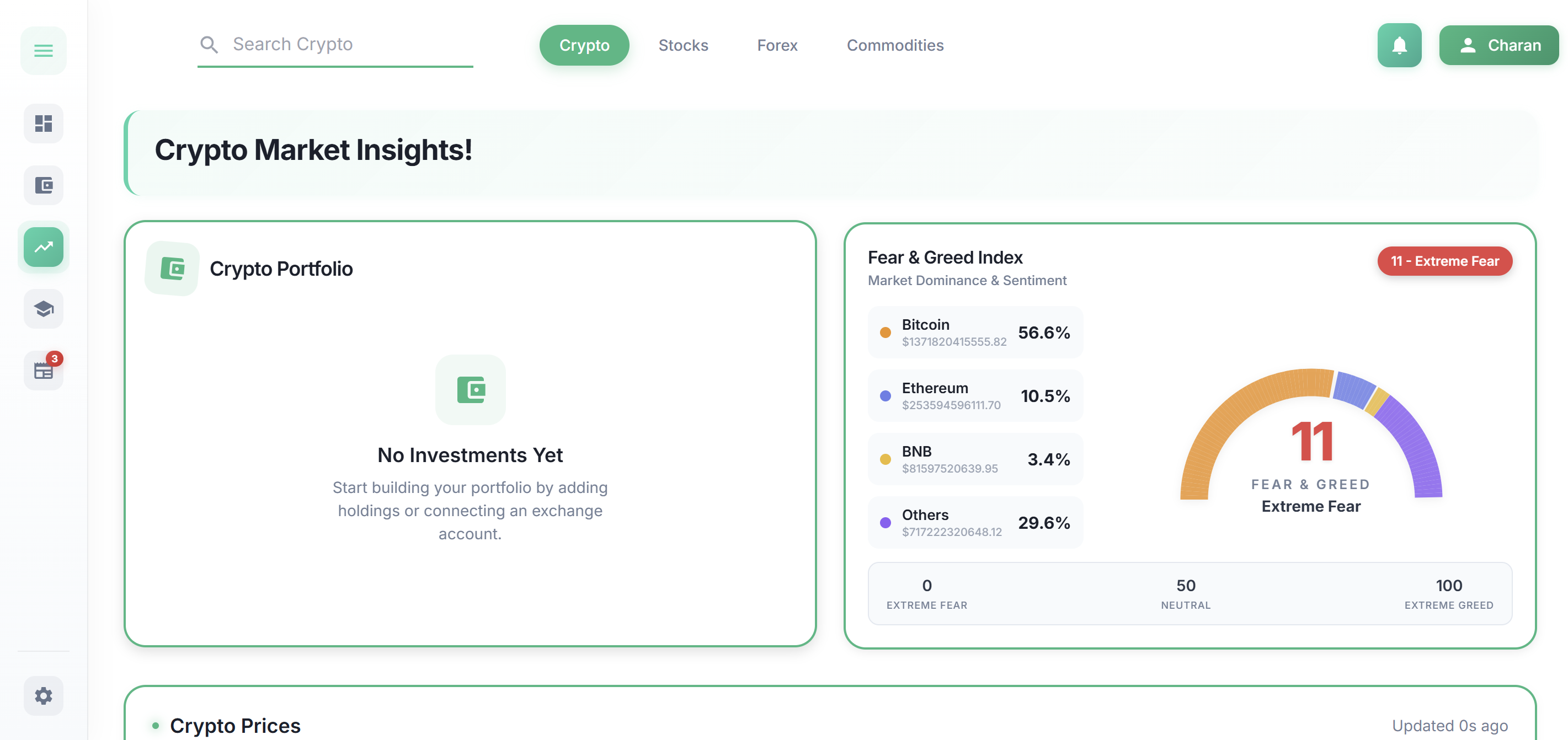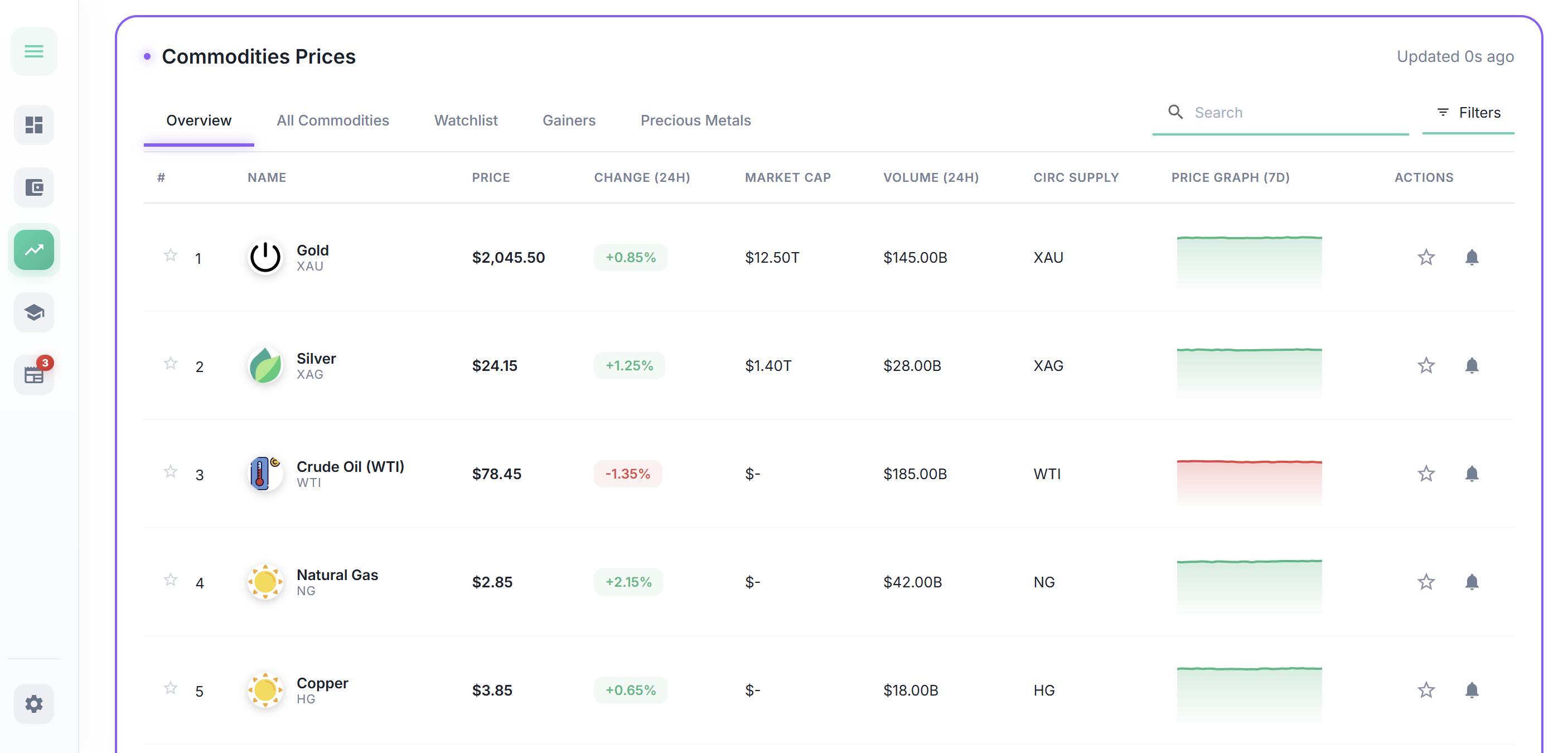 - Real-time market data across crypto, stocks, forex, and commodities