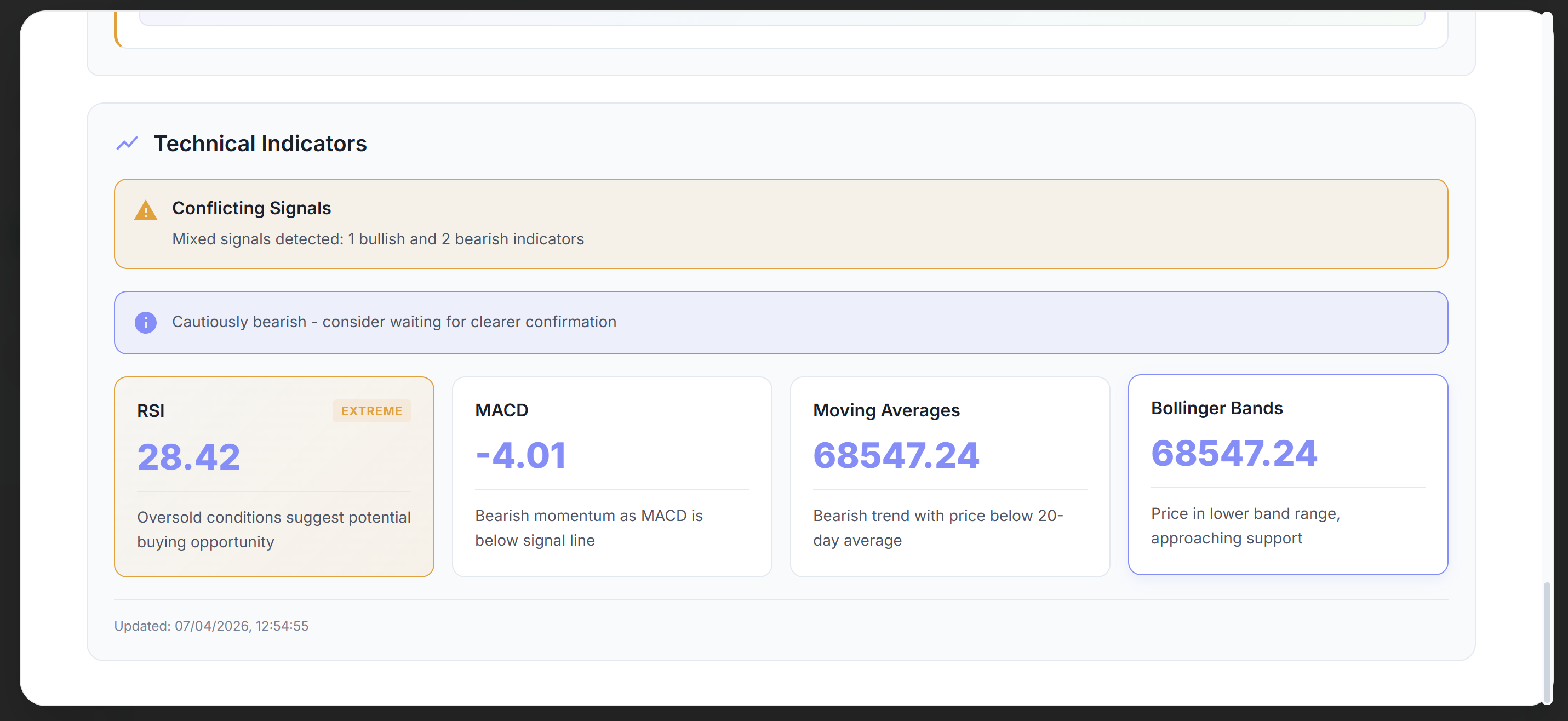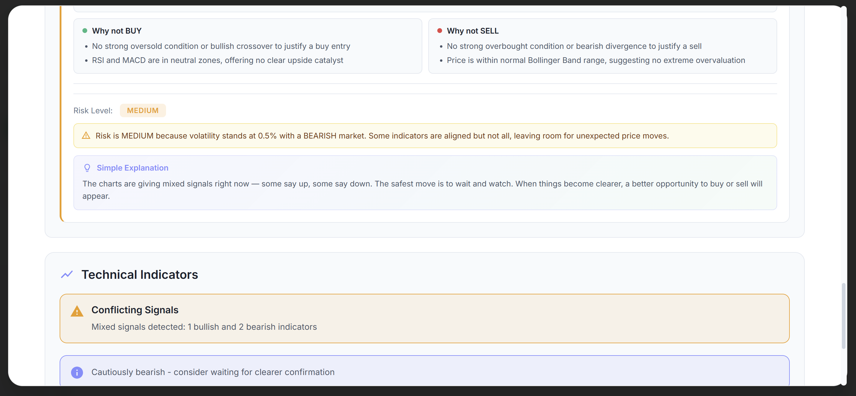 - AI signal quality: Raw Gemini responses needed structured parsing, confidence clamping (60–85%), and graceful fallback to rule-based signals to avoid empty or nonsensical outputs.