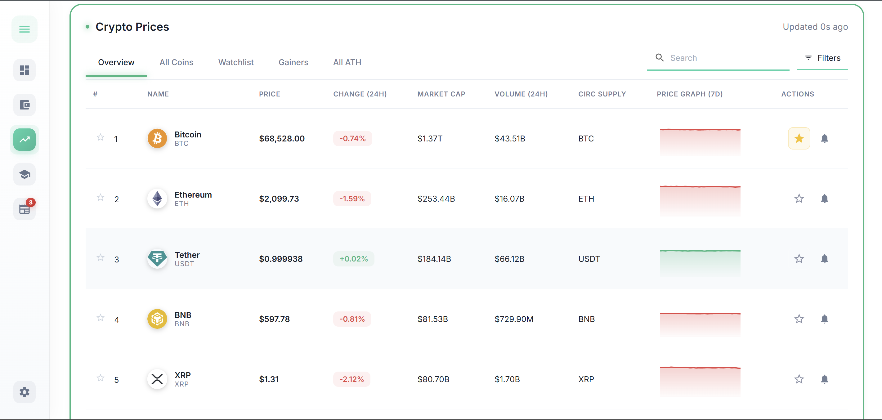 Crypto Market Screen