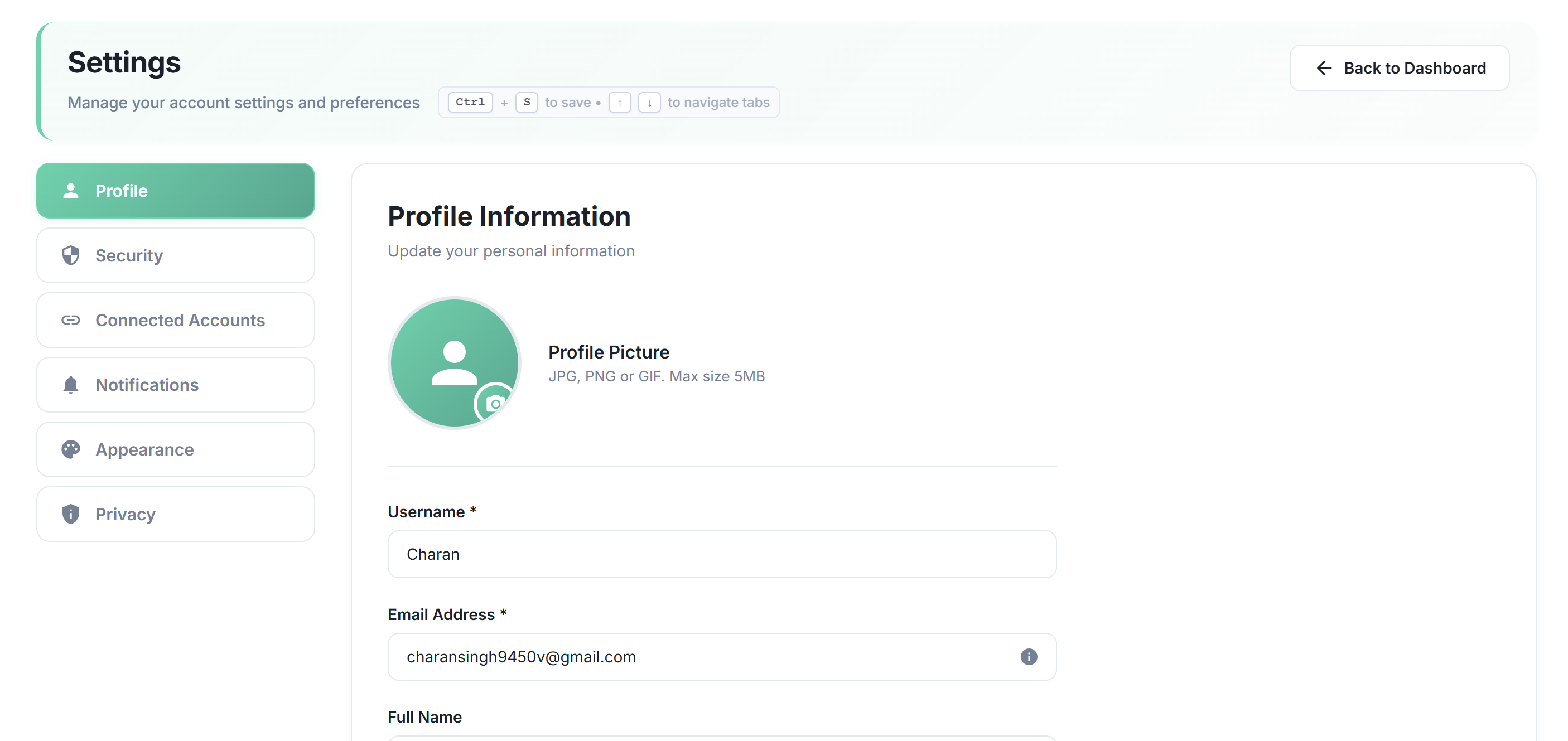 Settings (Profile) Screen