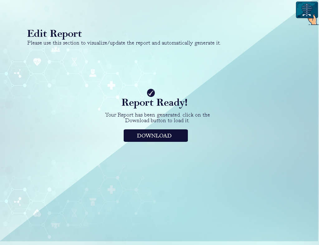 Impact: The AI report generation will ease the bottlenecks in radiology workflows and ensure faster diagnosis, which is highly desirable in critical health problems. Hospitals with suitable infrastructure can provide this service to remote places with limited resources by collecting the exams to be studied. AI-generated reports can be processed further with teleconsultations without the patient's need for travel. Meeting demand during a high surge in diagnosis as, in the current covid pandemic, and in countries where healthcare resources are in scarce.