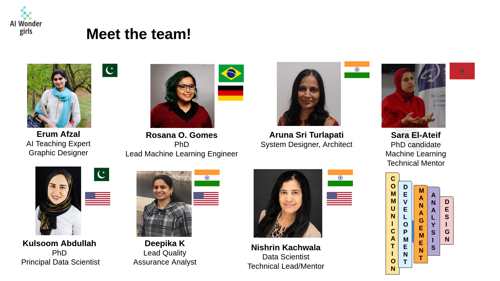 The AI wonder Girls team members are experienced data scientists and are passionate about contributing their skills to Healthcare Domain.