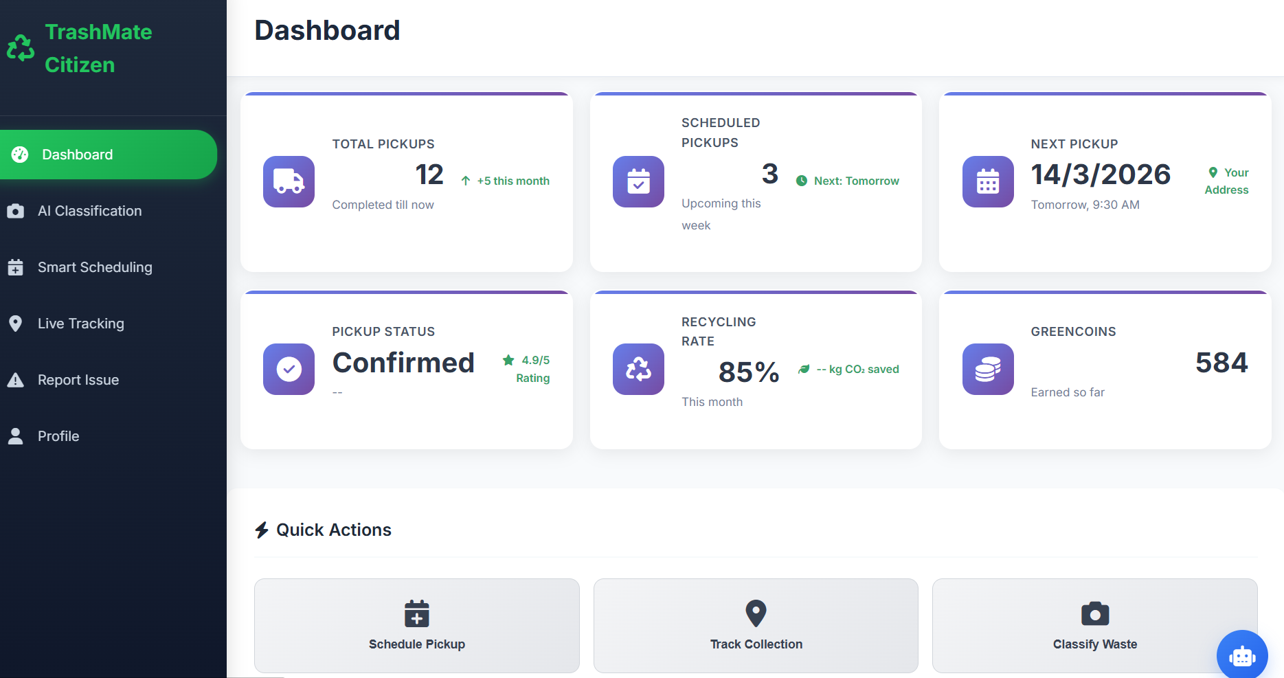 What it does TrashMate is a smart waste management platform that connects households, waste collectors, and recycling centers.