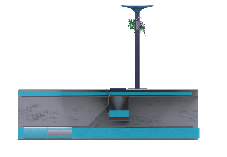 Tree-like Street light is inspired by the mechanism of forest. When heavy rain, rain water will be collected through the funnel shaped street light and the drain channel under the street light. Some water will be absorbed by the tube of the street light that contain orbeez that use to provide water to the plant that planted on the street light. After the water enters the concrete drain underneath the street light, rubbish, oil, grease and debris will be trapped in the catch basin that contain drain insert. The water from small sewage system nearby and catch basin will flow through the micro-hydro turbine to generate electricity. The funnel shaped street light has solar panel on it to generate electricity to light up the street at night. The water collected from the street light will later flow to the small sewage treatment system to be purified. When there is excess water during flood, the water will flow to river. However, when the water level of river is high, there will be a water gate that will close due to water pressure and the excess water will flow to nearby lakes, ponds and another water treatment system. The purified water be used to provide continuous water to micro-hydro turbine to generate electricity and be drank by residents. Only clean recycled water will be supply to the resident.