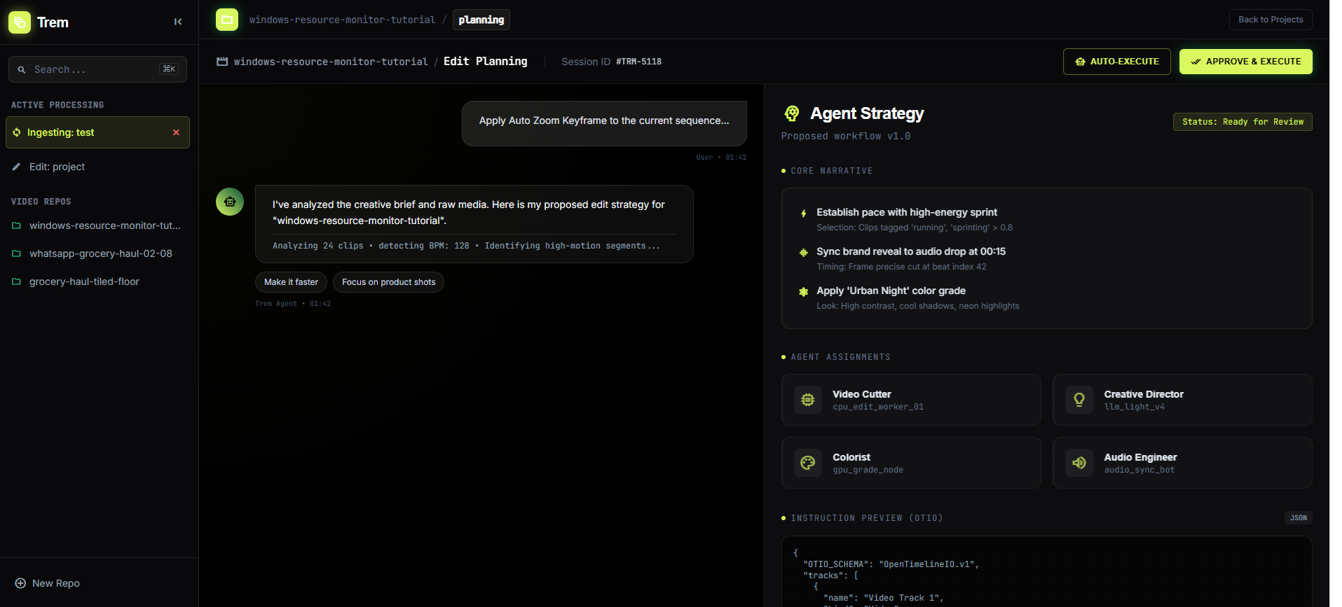Preset Editing Modes: One-click modes like “High-Energy Speaker” or “Cinematic Montage” powered by AI timing and FFmpeg.