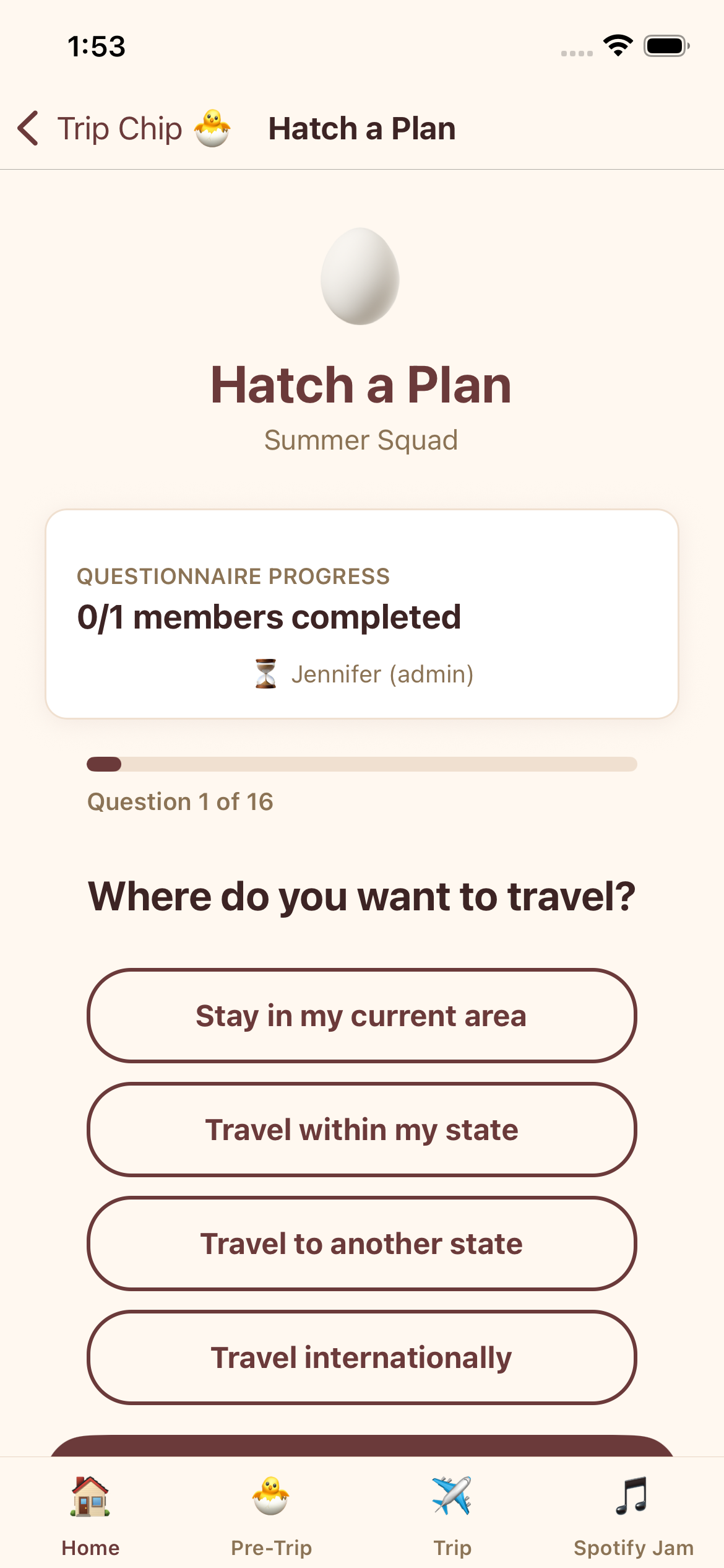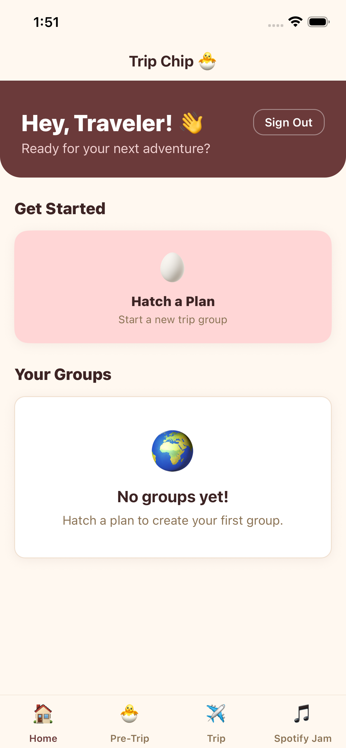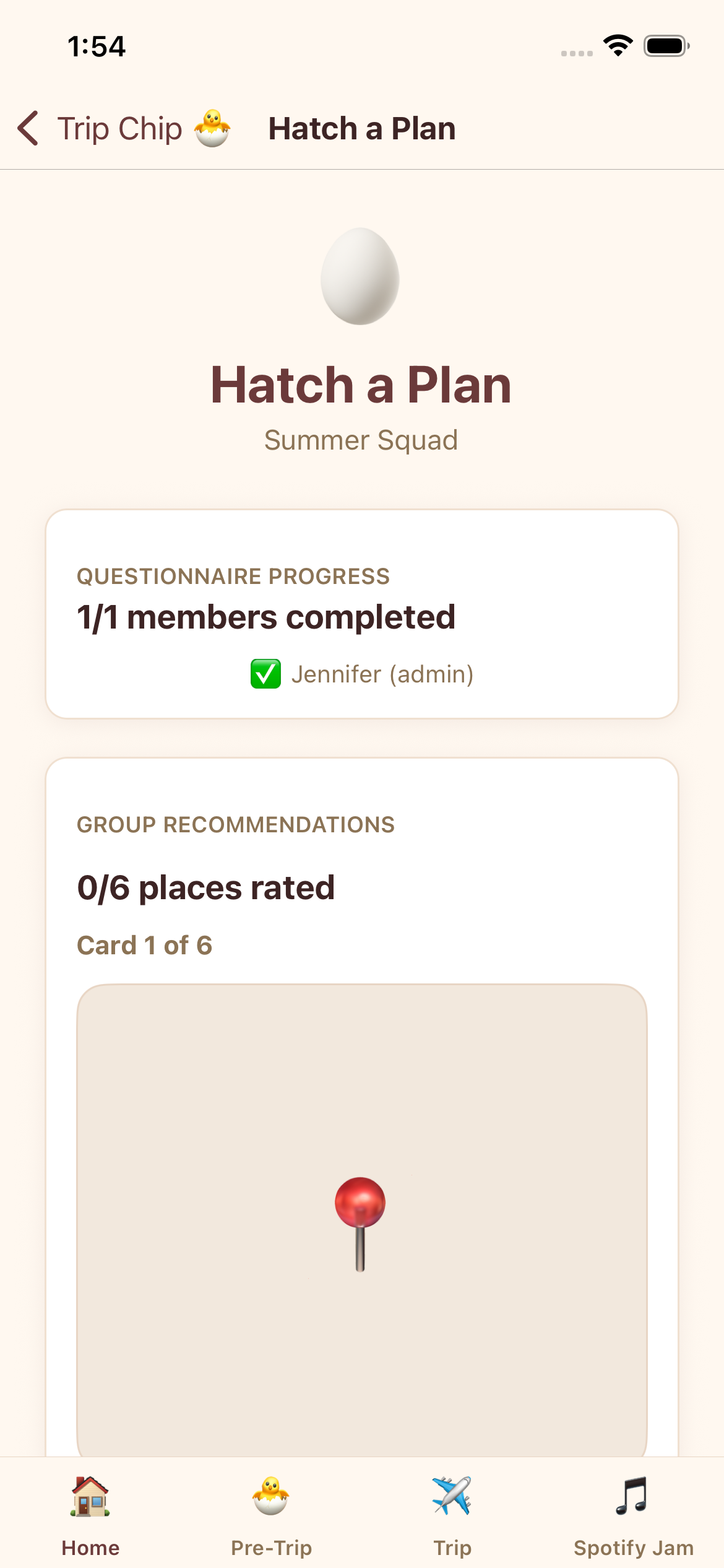 Purpose: tripchip is the application that solves this by taking user preferences on trips and once a user joins a group, the app will take the majority preferences out of all the groups and build out an itinerary best accomodating user preferences along with additional restrictions such as diet and location.