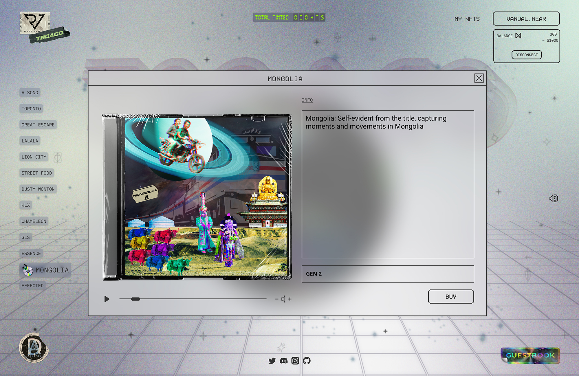 Our DAOrecords MVP allows the creator (in this case Vandal) to mint an NFT in the admin panel and have it appear on the website we built exclusively for the Audio NFT Release (in this case Vandal's album TROACO).