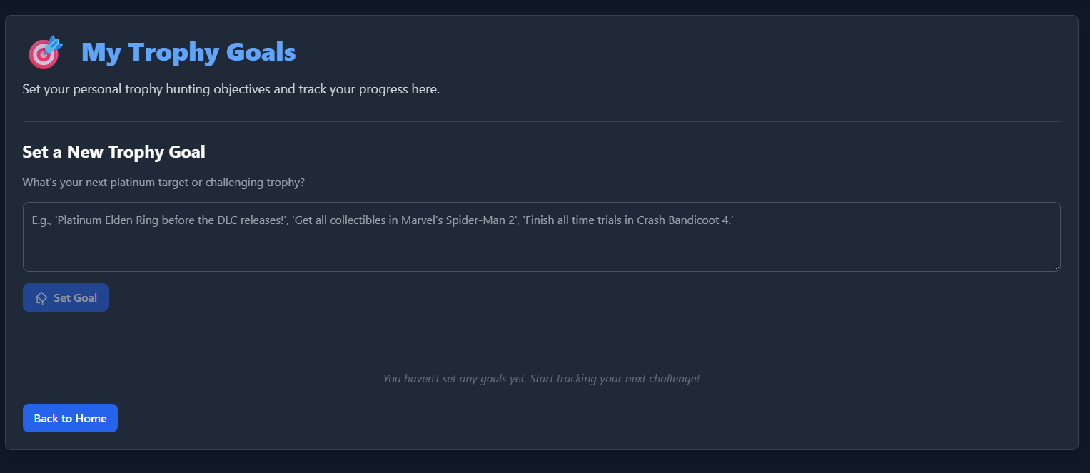 TrophySeeker is a modern web application designed for the dedicated trophy hunting community. By integrating Google Gemini AI, we've created a platform that doesn't just track statistics, but provides intelligent guidance, predictive analytics, and social connectivity to help you reach that next Platinum.