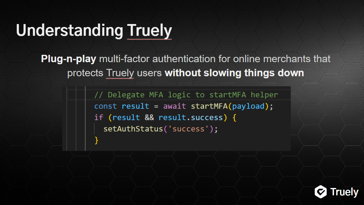 Truely is a plug-and-play JavaScript component, where online retailers can attach our automatic MFA library to their product pages while only writing a few lines of code!