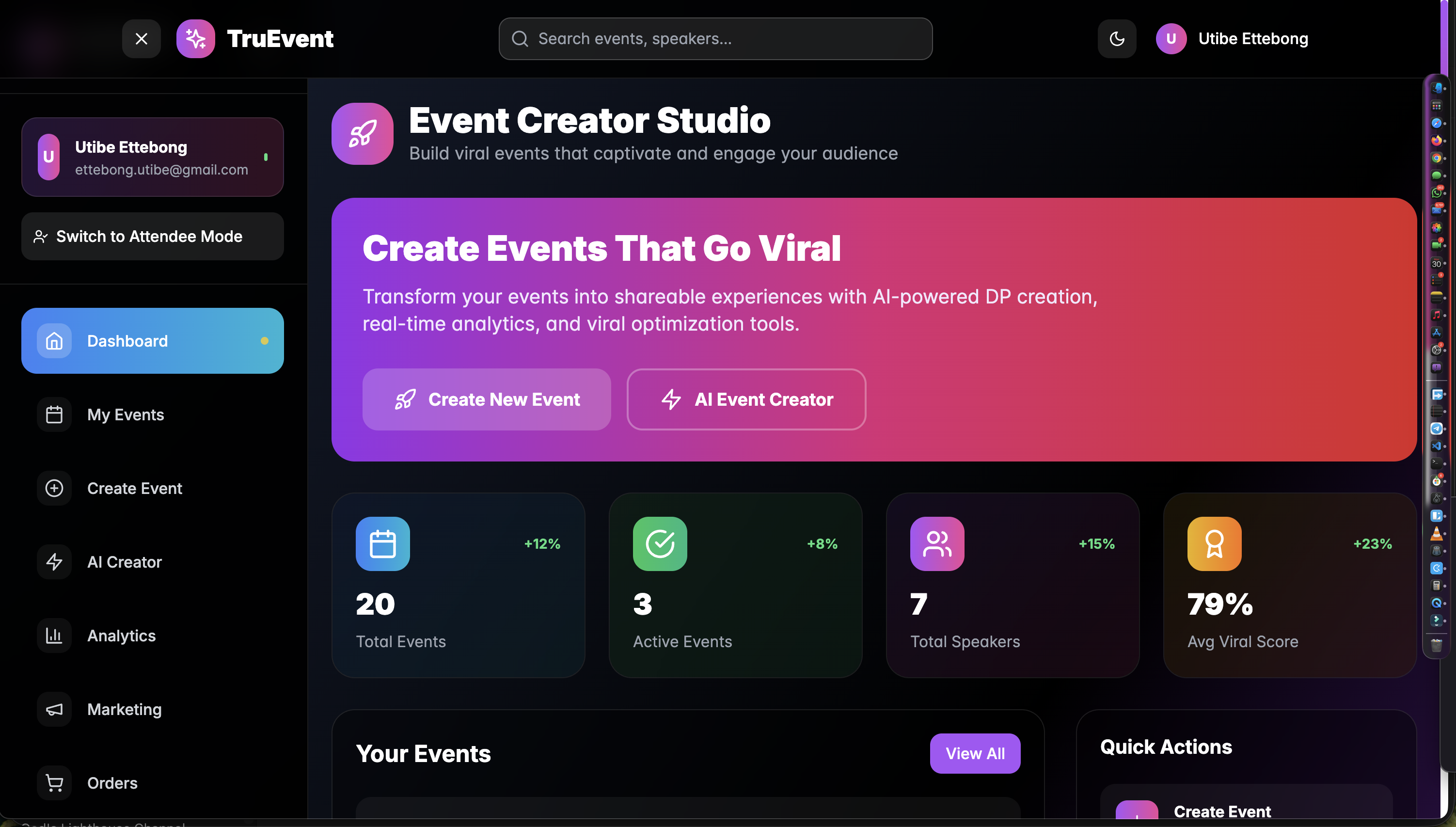 TruEvent is a platform that helps organizers create and host events that go viral — not with ads, but with identity. Attendees can register for an event, upload their photo, and instantly generate a personalized display picture (DP) using a custom event-branded template.