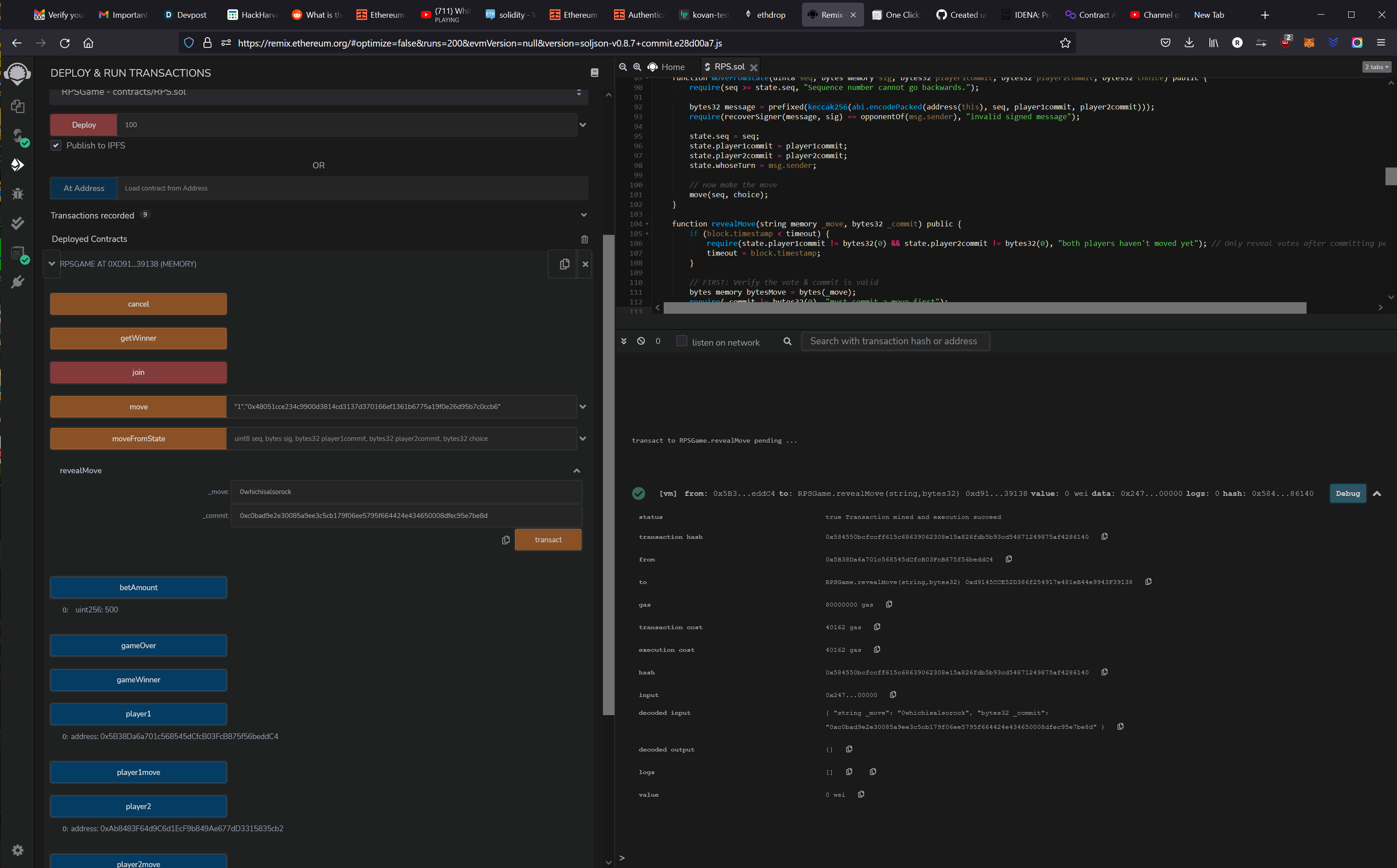 After the timer runs out, or both players have moved, the moves need to be verified and revealed. Both players submit their original move + the hashed version, and if they match up the move is saved.