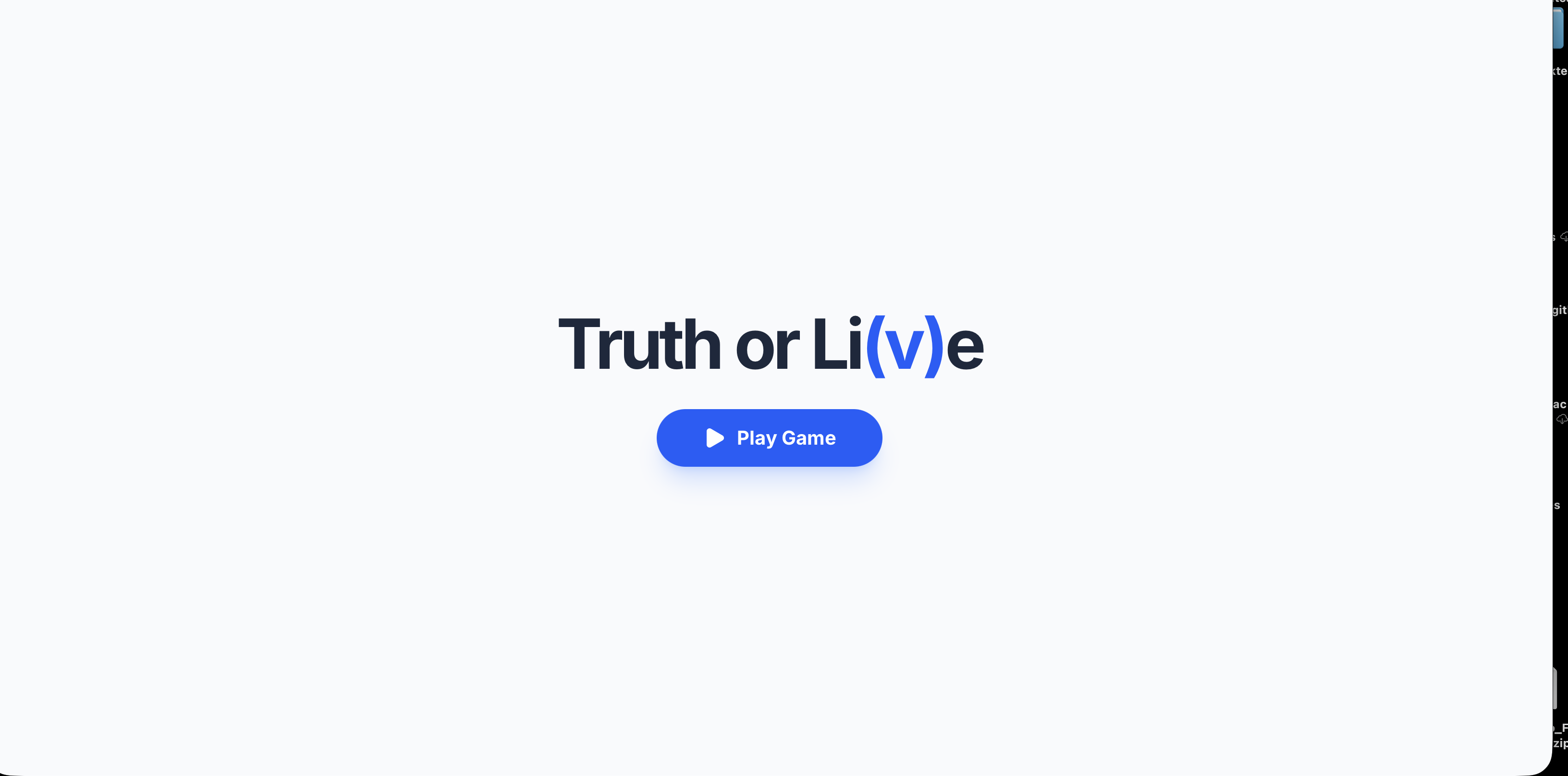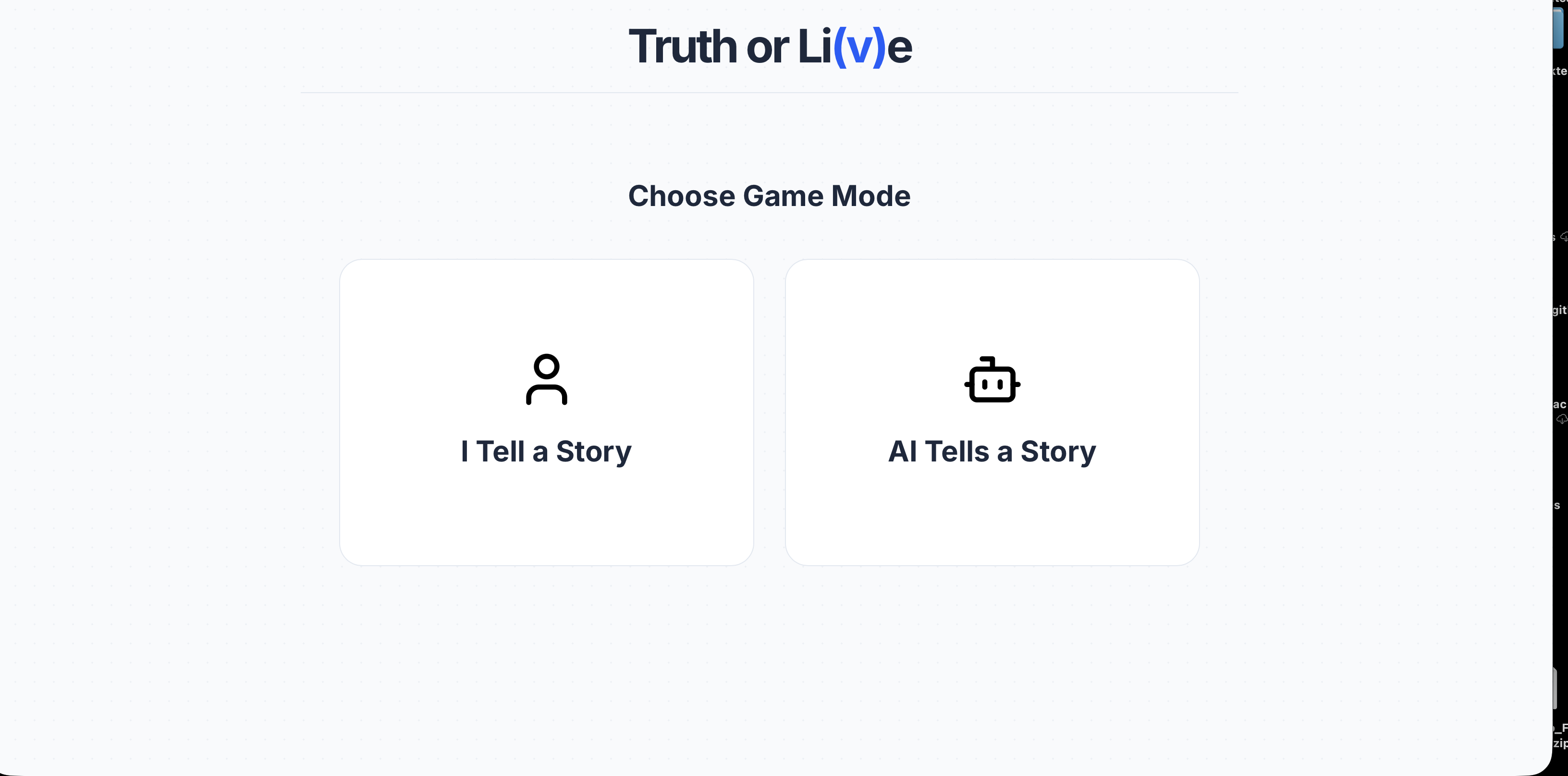 Accomplishments that we're proud of A fully working real-time multimodal lie detector that genuinely notices when you look away or your voice shifts Multiplayer support with per-player question turns, all coordinated through a single Live API session A client-side achievement card generator using Canvas API — no image generation API needed Clean deployment pipeline from GitHub push to live URL with zero manual steps What we learned The Gemini Live API's multimodal capability is genuinely powerful — simultaneous video + audio analysis in a single session opens up interaction patterns that simply weren't possible before Prompt engineering for game mechanics requires strict format constraints. Vague instructions like "give your verdict next" fail; explicit constraints like "your response MUST start with VERDICT:" work reliably Cloud Run + buildpacks is a clean deployment story once the runtime vs. build-time environment variable distinction is properly understood What's next for Truth or Li(v)e A leaderboard tracking who has fooled the AI the most Harder difficulty modes where the AI is more aggressive and asks follow-up questions mid-story Mobile support with optimized camera framing A "practice mode" where the AI gives you feedback on how to lie better — coaching your delivery, pacing, and eye contact