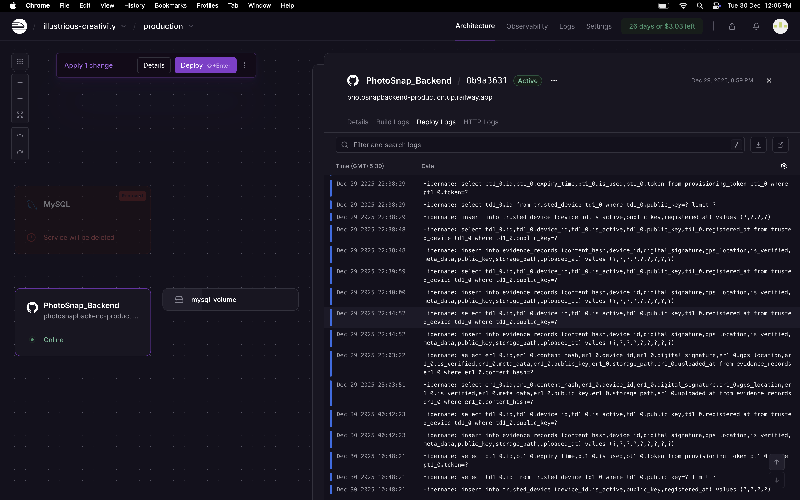 Railway Truth_Chain SpringBoot Backend hosted Logs