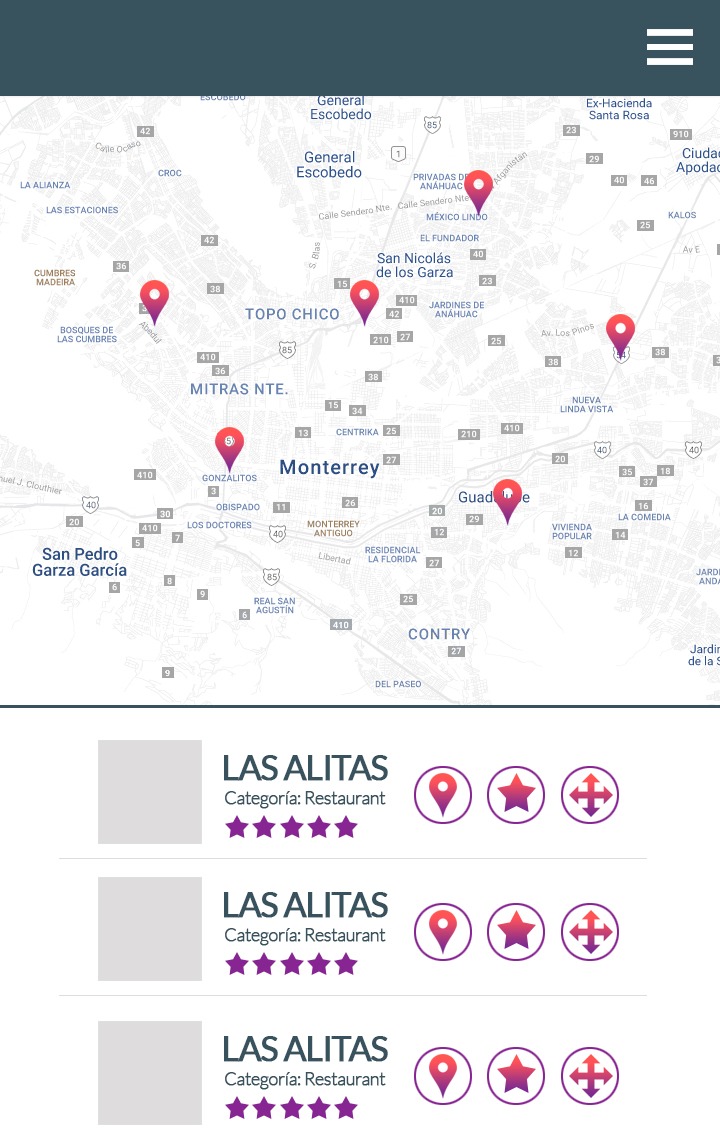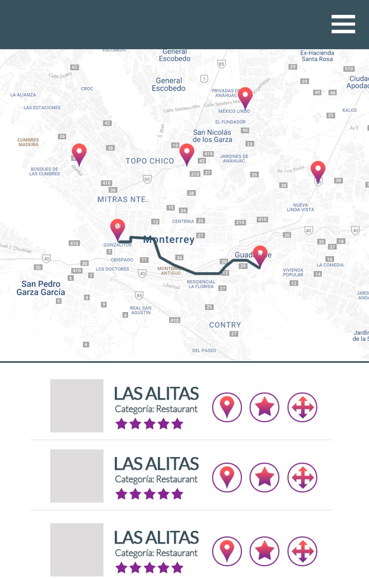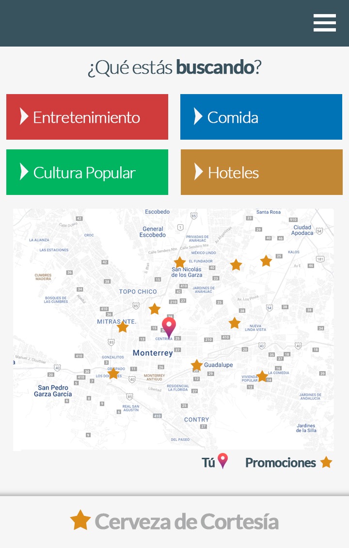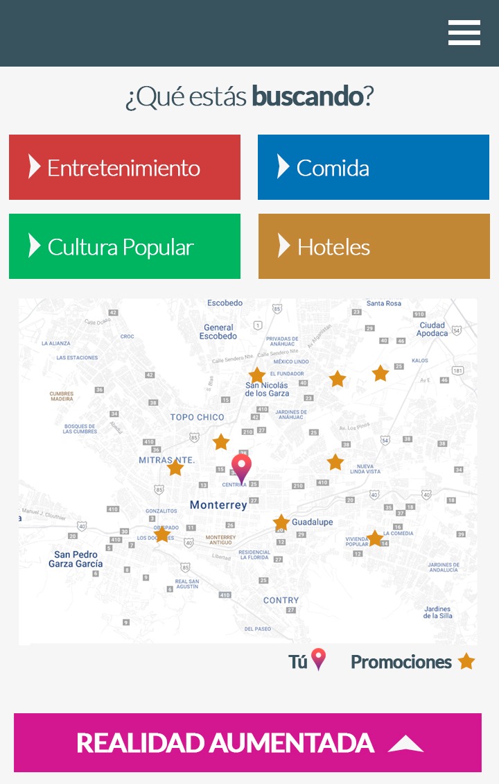 A mockup of a multiplatform mobile app that helps the tourist experience in his visit to Nuevo Leon.