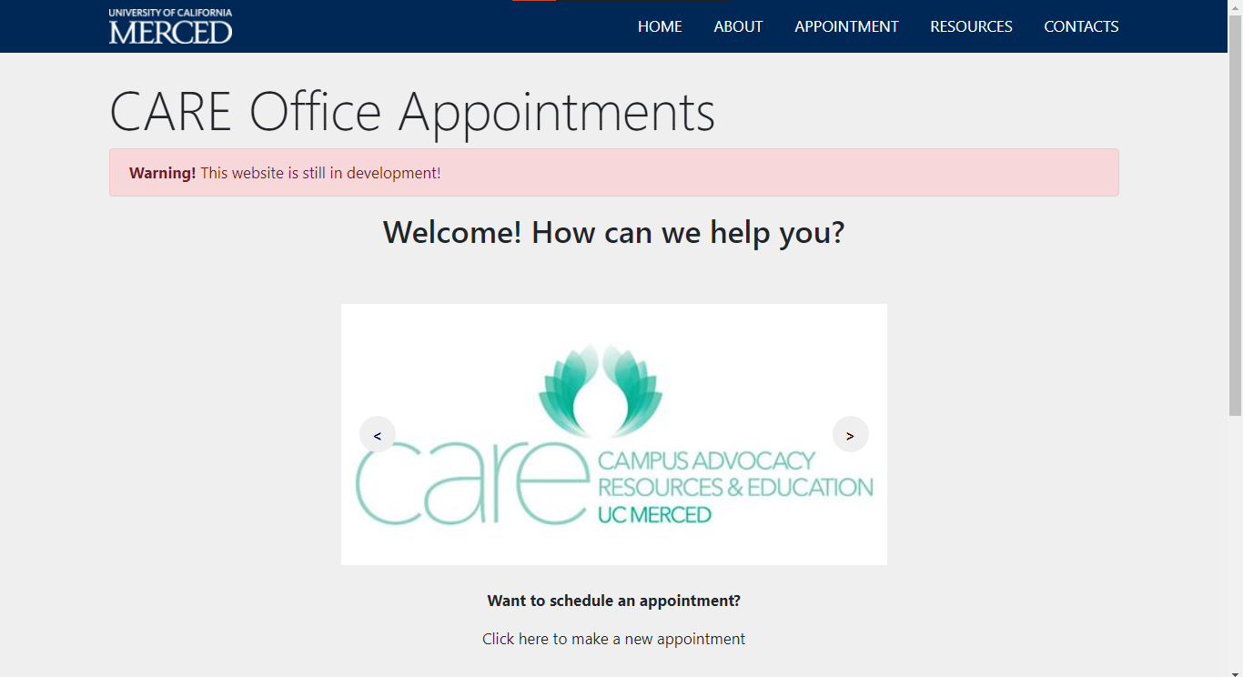 The entirety of this project is centered solely around the accessibility of health resources, ranging from mental health to domestic violence. As part of the general student population, our group noticed how these very things were not being properly addressed within our own school. Accessing appointments with the CARE office can range anywhere from weeks to months, and educational resources for the previously mentioned matters were not available to us students. Thus began our main mission of implementing this ideology beginning with renovating the main site. We incorporated a more useful appointment scheduling system via Calendly and added a few resources for students to access.