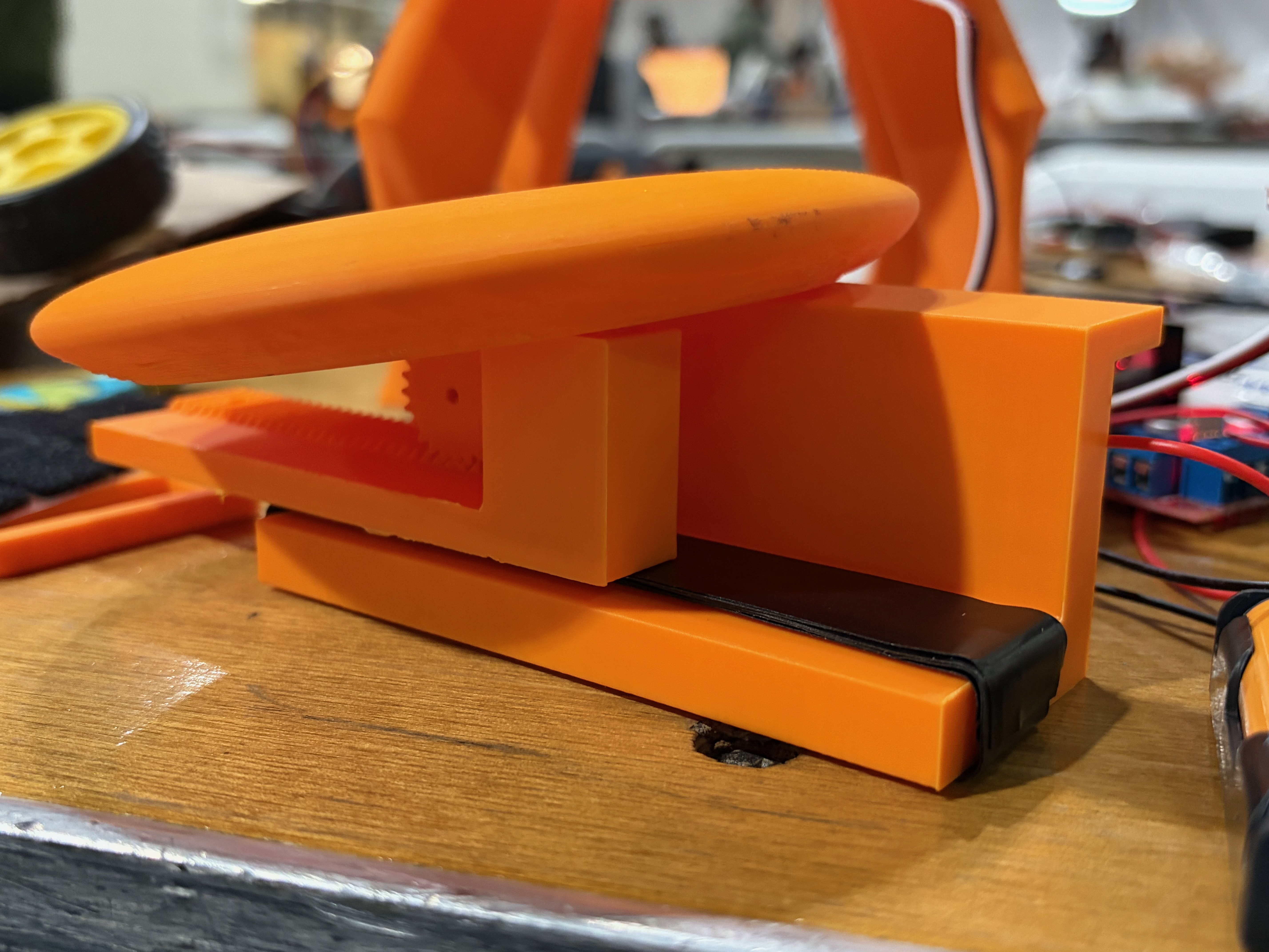 We are proud of making sub projects that worked, even if they couldn't all be integrated into our final project perfectly. We were able to create a lift system and a frisbee reloading system, and get our two tires and servo motor to do what is intended.