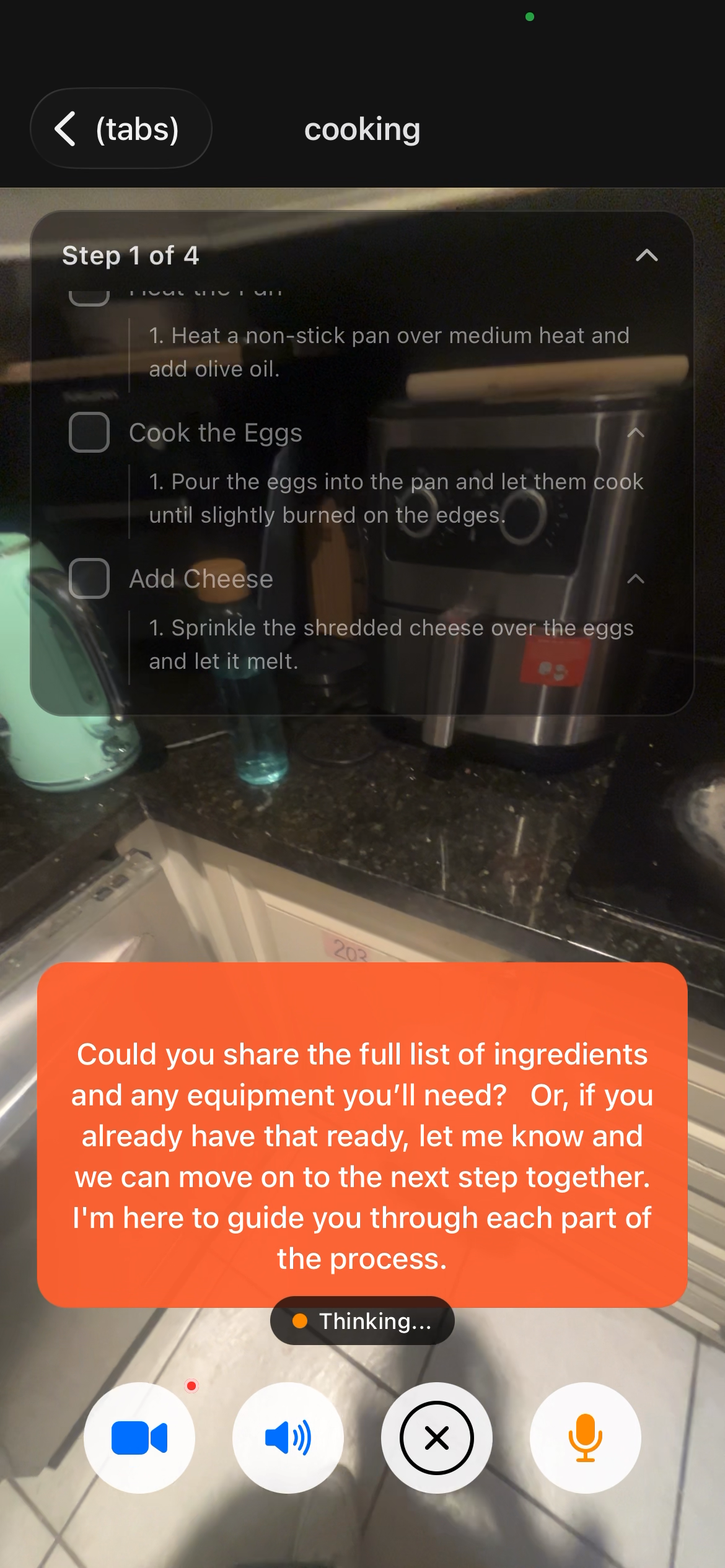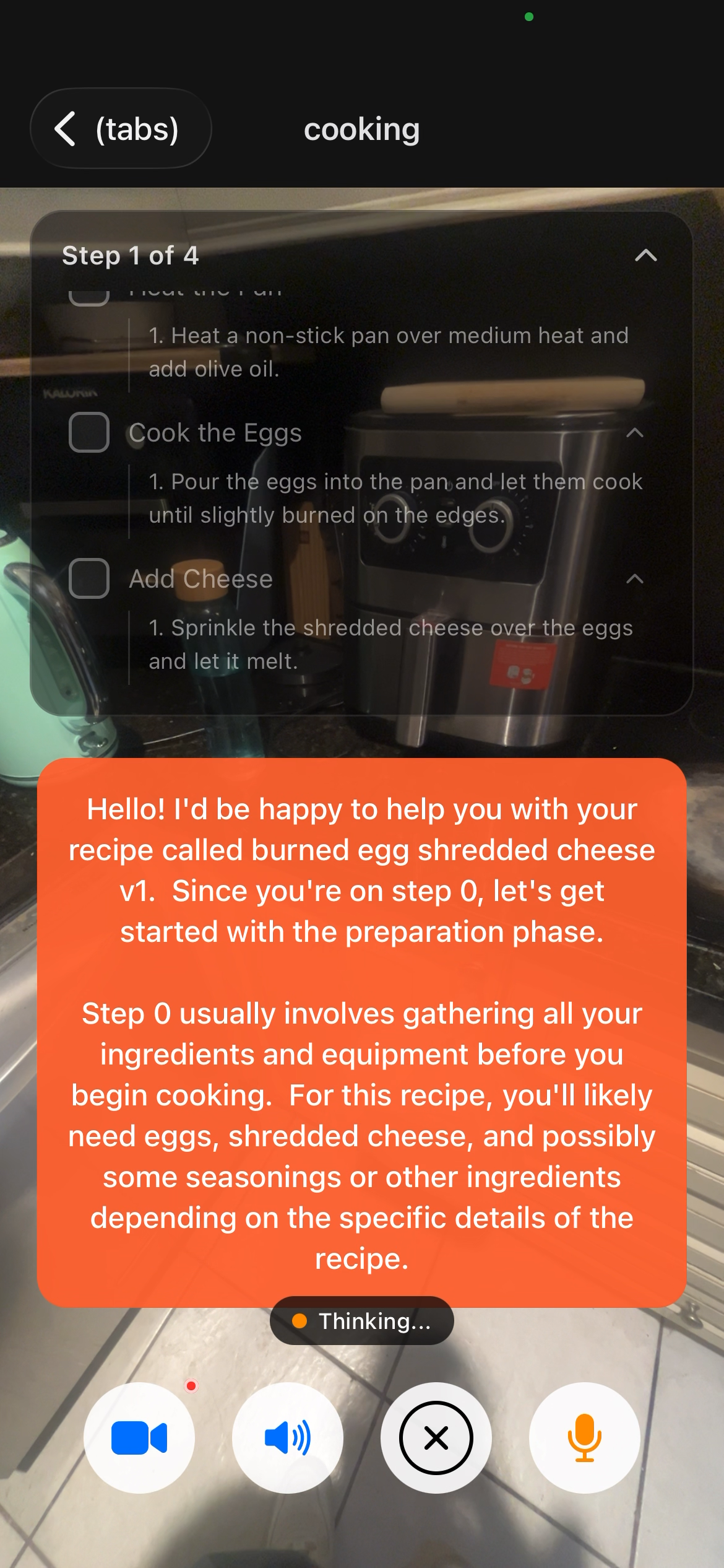 Context-Aware Mistake Detection: We didn't just build a wrapper around an image analyzer; we built a system that actually understands the state of the kitchen. Passing the current_step and mistakes_so_far into the AI so it can accurately coach the user, issue priority alerts, and adapt the recipe checklist dynamically is a feature we are extremely proud of.