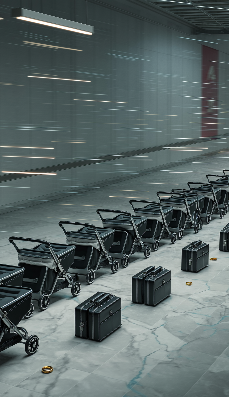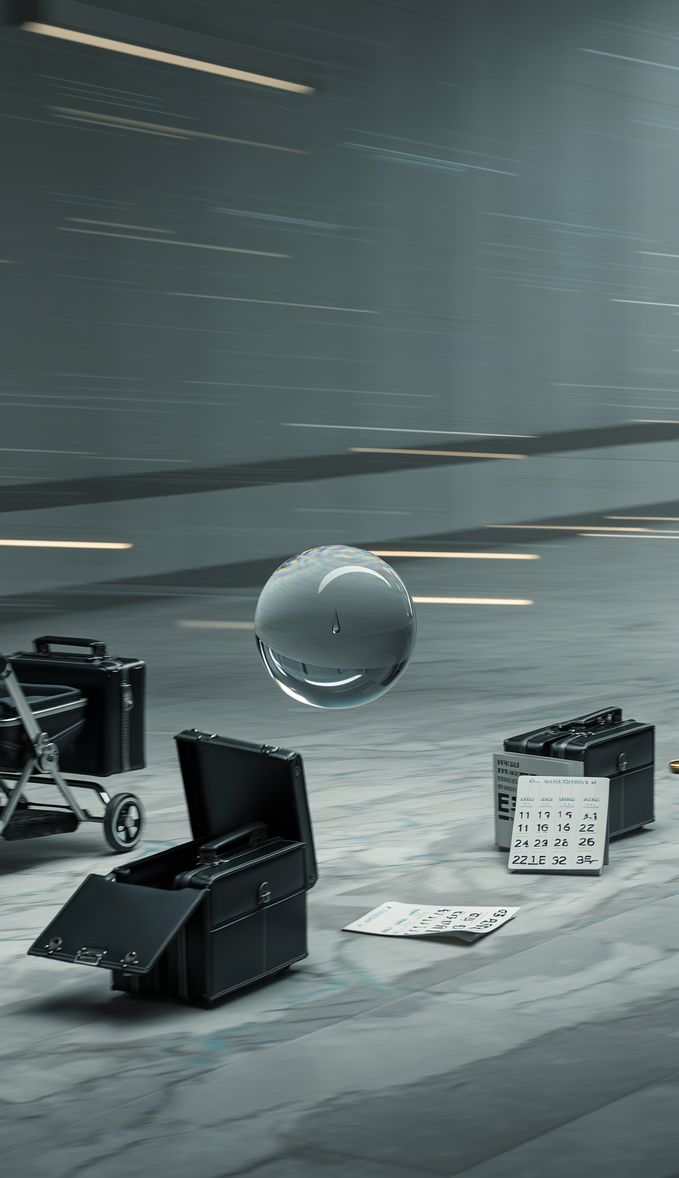 A simple and short animation that shows a single glass orb rolling past wedding rings, baby carriages, suitcases and calendars racing toward society’s prescribed milestones—an anomaly that never joins the chase. The glass orb shows deviance or resistance to the preset standards of life and follows its own path. It releases from pressure and in the end is shown in its lightest form representing relief.