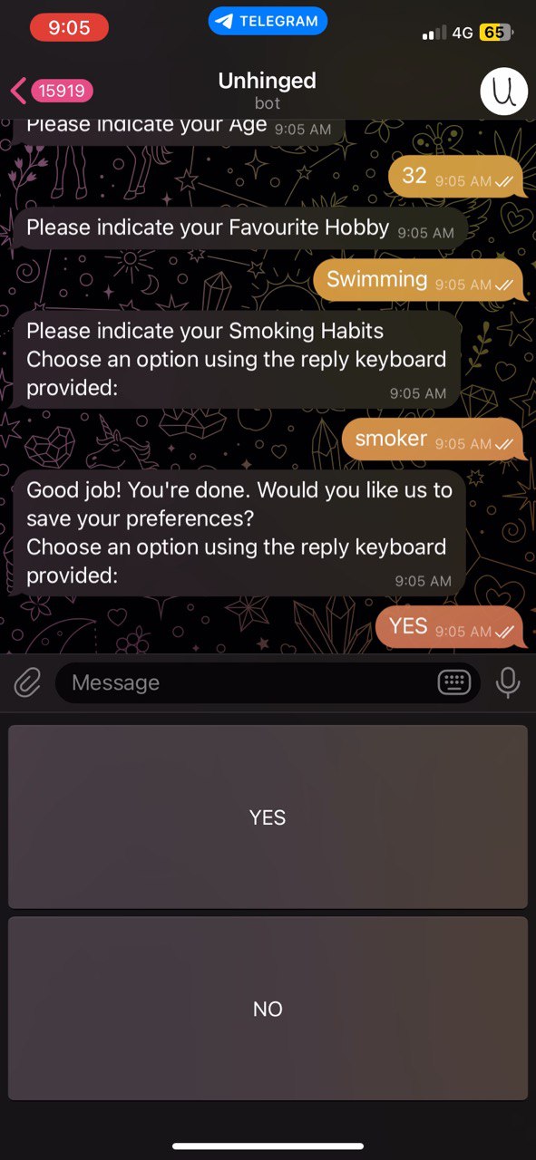 - We built a telegram bot that would be responsible for querying users for their profile details and preferences which were then used as input to our matching algorithm