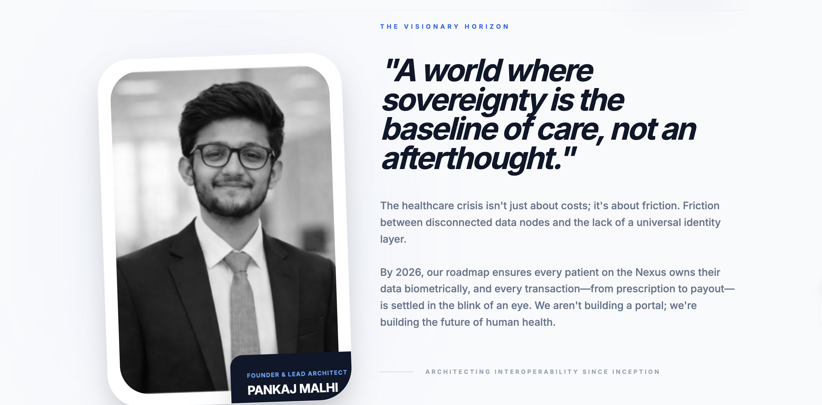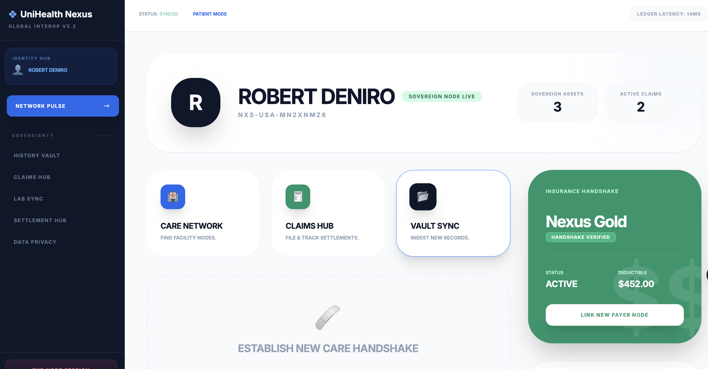 UniHealth Nexus emerged from the vision of creating a single, intelligent healthcare platform where a patient’s lifetime medical history is securely accessible using only a country-issued identification number (SSN, CNIC, Aadhaar, etc.).