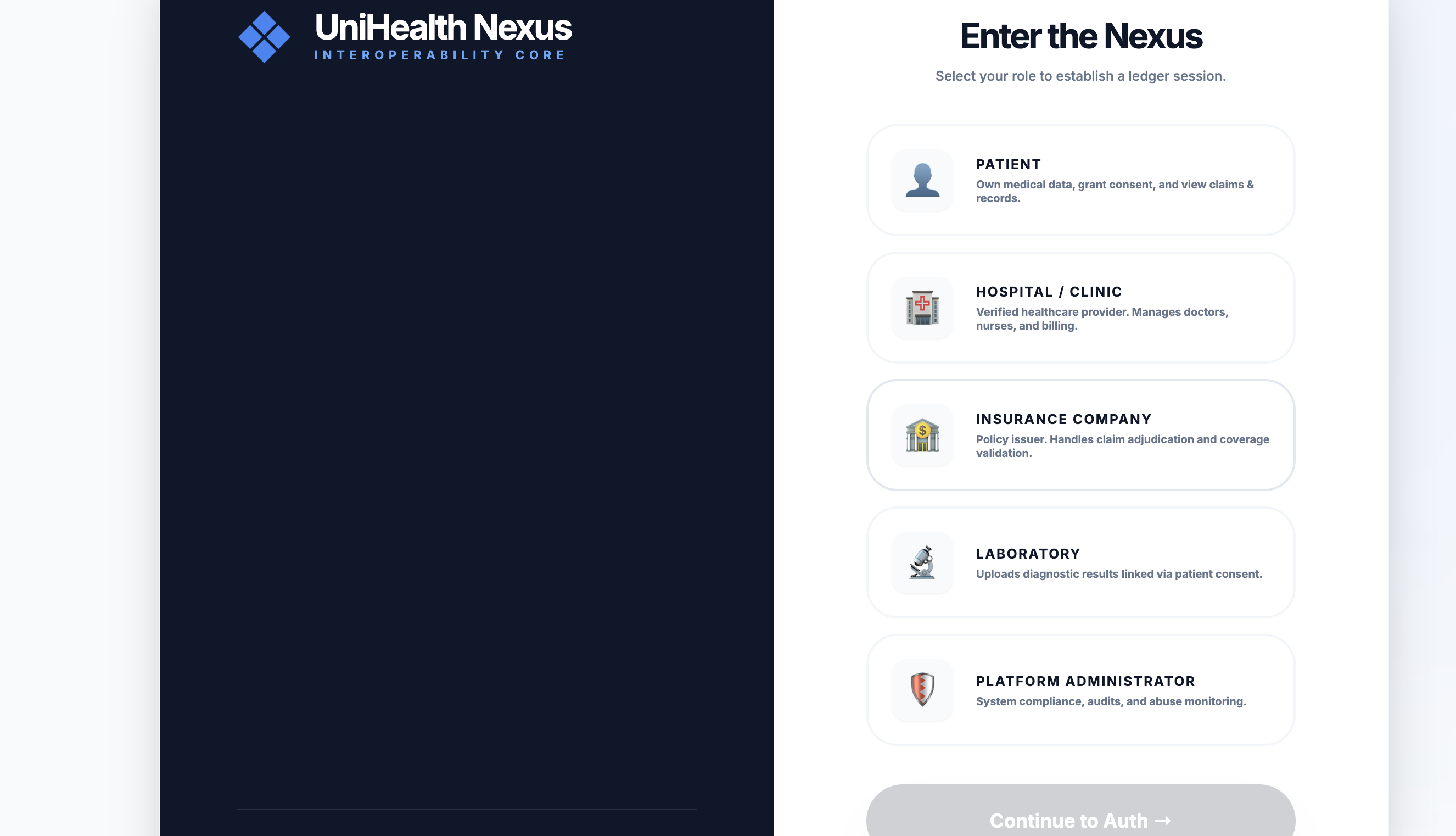 UniHealth Nexus is an AI-powered unified healthcare and insurance platform that connects patients, hospitals, labs, insurers, and public health systems into one intelligent ecosystem.