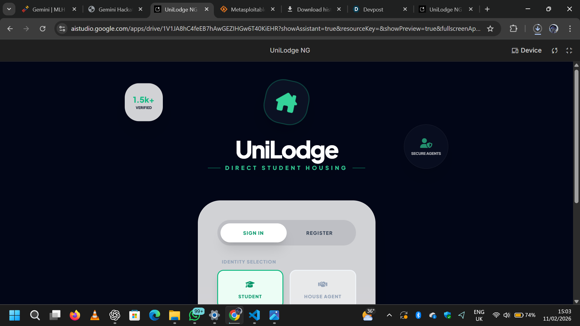 Inspiration: Finding off-campus accommodation in Nigerian universities is often stressful, unsafe, and filled with scams. Students struggle to connect with trusted agents, while genuine agents lack a credible digital presence. We built UniLodge to bridge that gap and make student housing safer and simpler. What it does: UniLodge connects university students with verified house agents within their campus communities. Students can browse listings, watch property videos, view prices, and connect directly with trusted agents. Agents can upload properties and manage inquiries through their dashboard. How we built it: We designed UniLodge as a mobile-first platform with two user roles: students and house agents. We implemented secure authentication, structured dashboards, and a listing system that supports video uploads and pricing transparency. Verification processes ensure only trusted agents go live. Challenges we ran into: Designing a reliable agent verification system Structuring the platform to remain simple yet scalable Ensuring trust and transparency in a high-risk market Optimizing video uploads for smooth performance Accomplishments that we're proud of: Created a solution addressing a real and urgent student problem Built a dual-dashboard system for students and agents Integrated property video uploads for transparency Designed a platform focused on trust and simplicity What we learned: We learned that solving real-world problems requires simplicity, trust, and user-centered design. Building for students means prioritizing clarity, speed, and reliability above complexity. What's next for UniLodge: Launch in one pilot university Strengthen agent verification with partnerships Introduce in-app messaging and booking features Expand across multiple Nigerian campuses Integrate AI-powered recommendations for smarter housing matches.