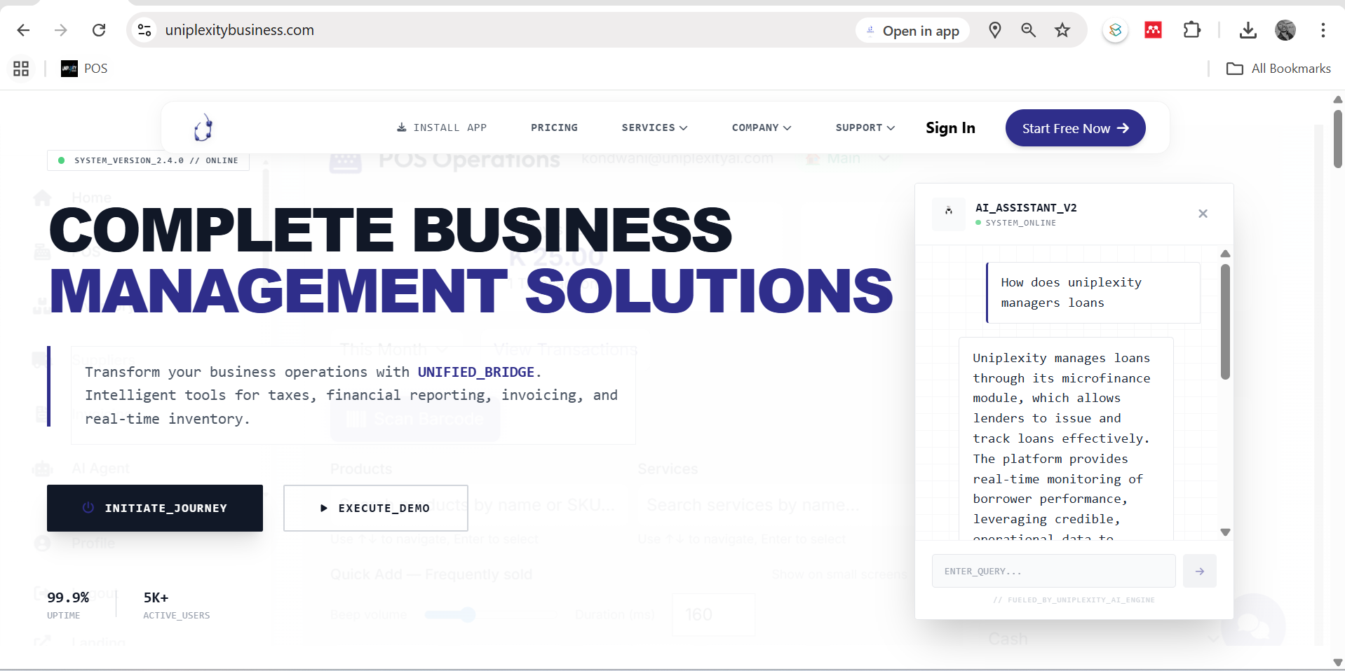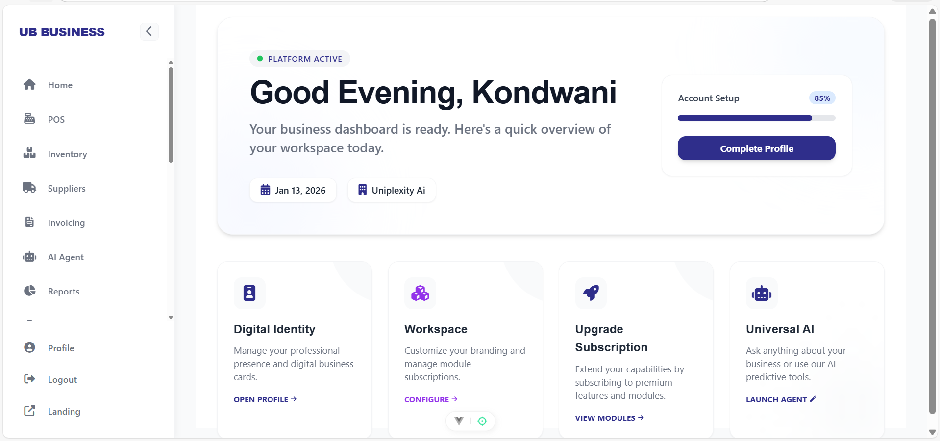 We built Uniplexity as a desktop-based, modular ERP platform with an integrated AI lending layer, optimized for environments with inconsistent connectivity and diverse business maturity levels.