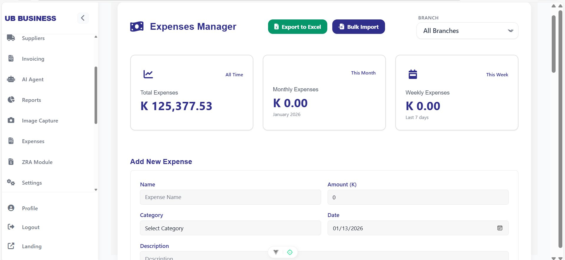 - Media & Documents: images of receipts, contracts, delivery notes, operational evidence