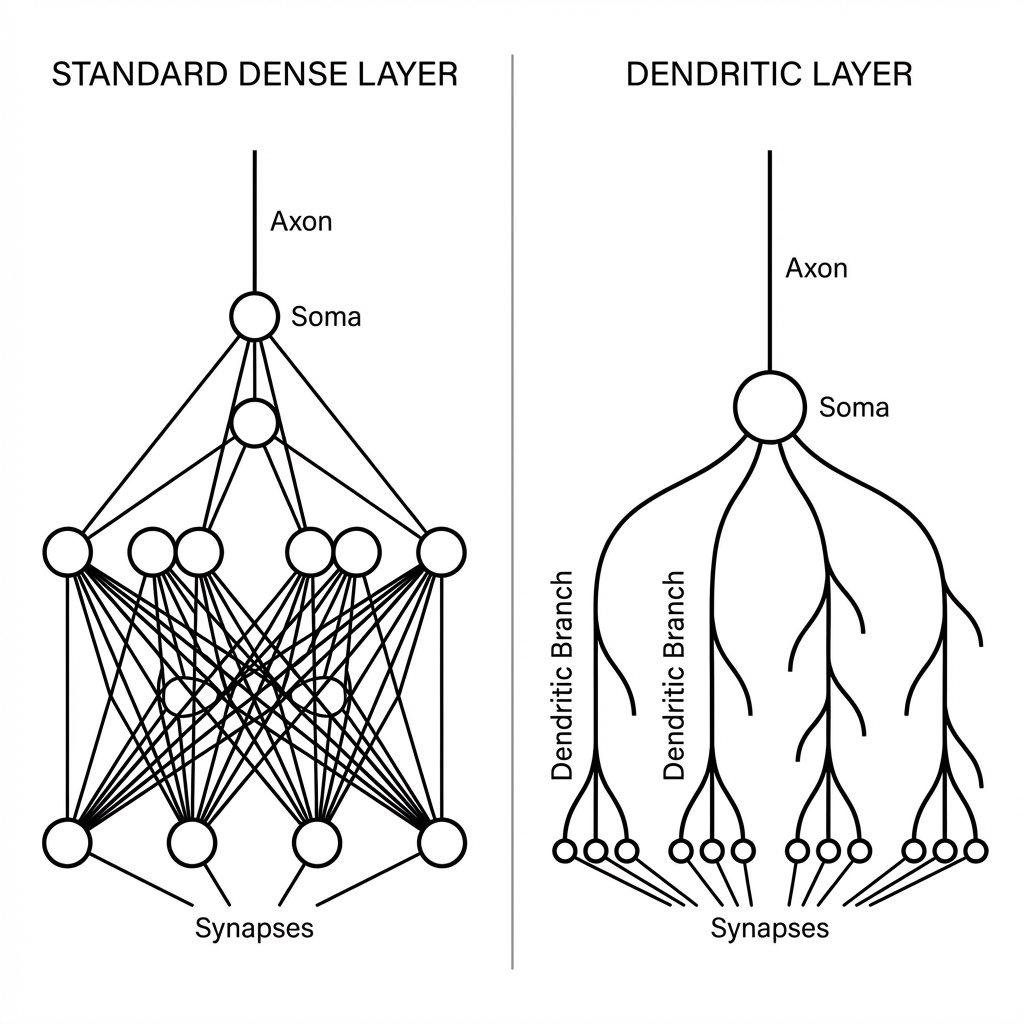 Biological neurons utilize dendrites as independent, non-linear computation branches. A single neuron can solve complex linearly non-separable problems (like XOR) given the correct dendritic structure. We hypothesized that mathematically modeling these branches would allow us to replace large, dense networks with smaller, sparse, and more interpretable dendritic layers.