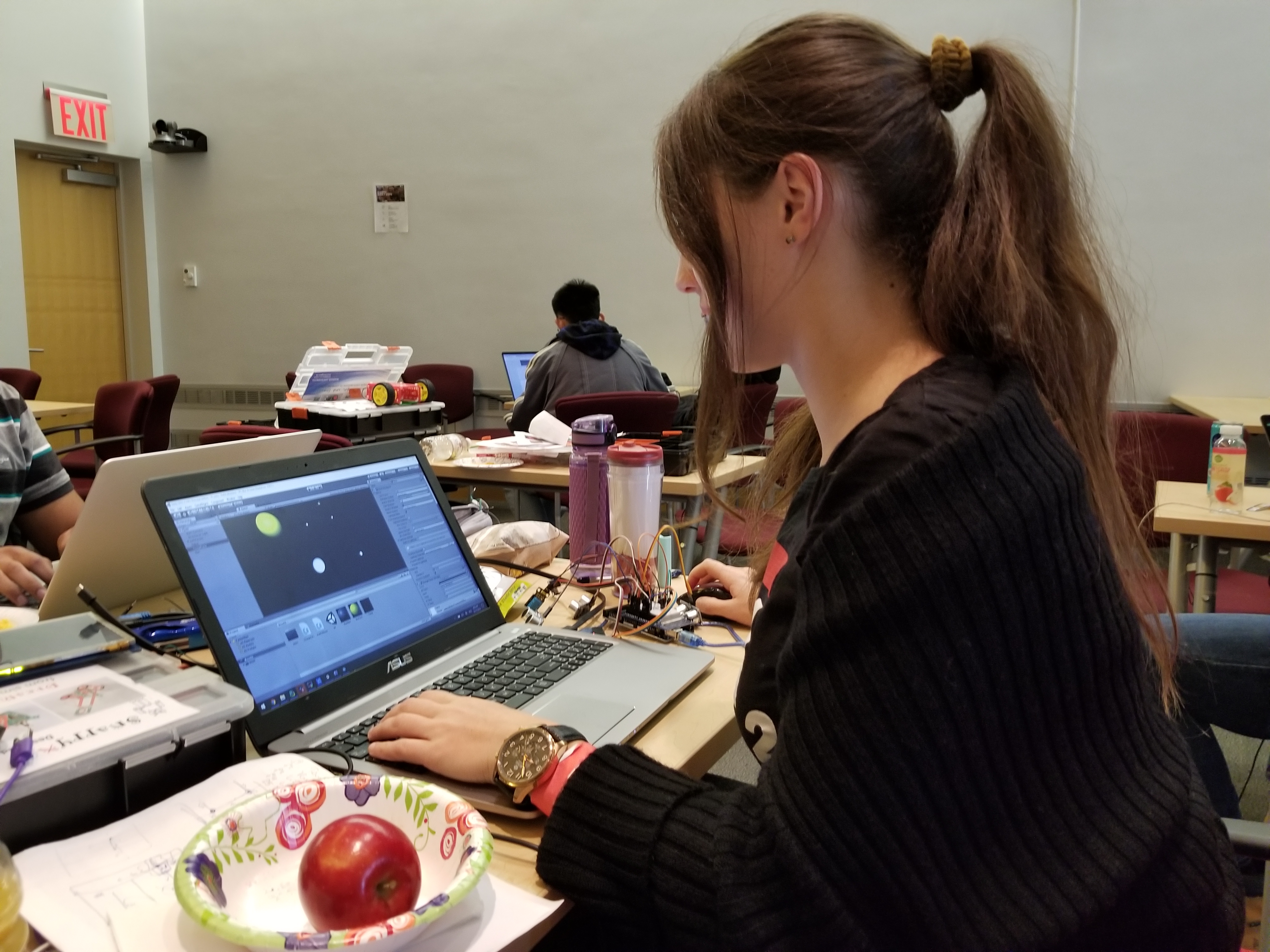 In a short period of time, we built a nice little robot, equipped it with a number of nice tricks and skills, as well as developed visualization of the environment in Unity and a health care bot. We believe to have built something useful, with a mission of improving people's lives.