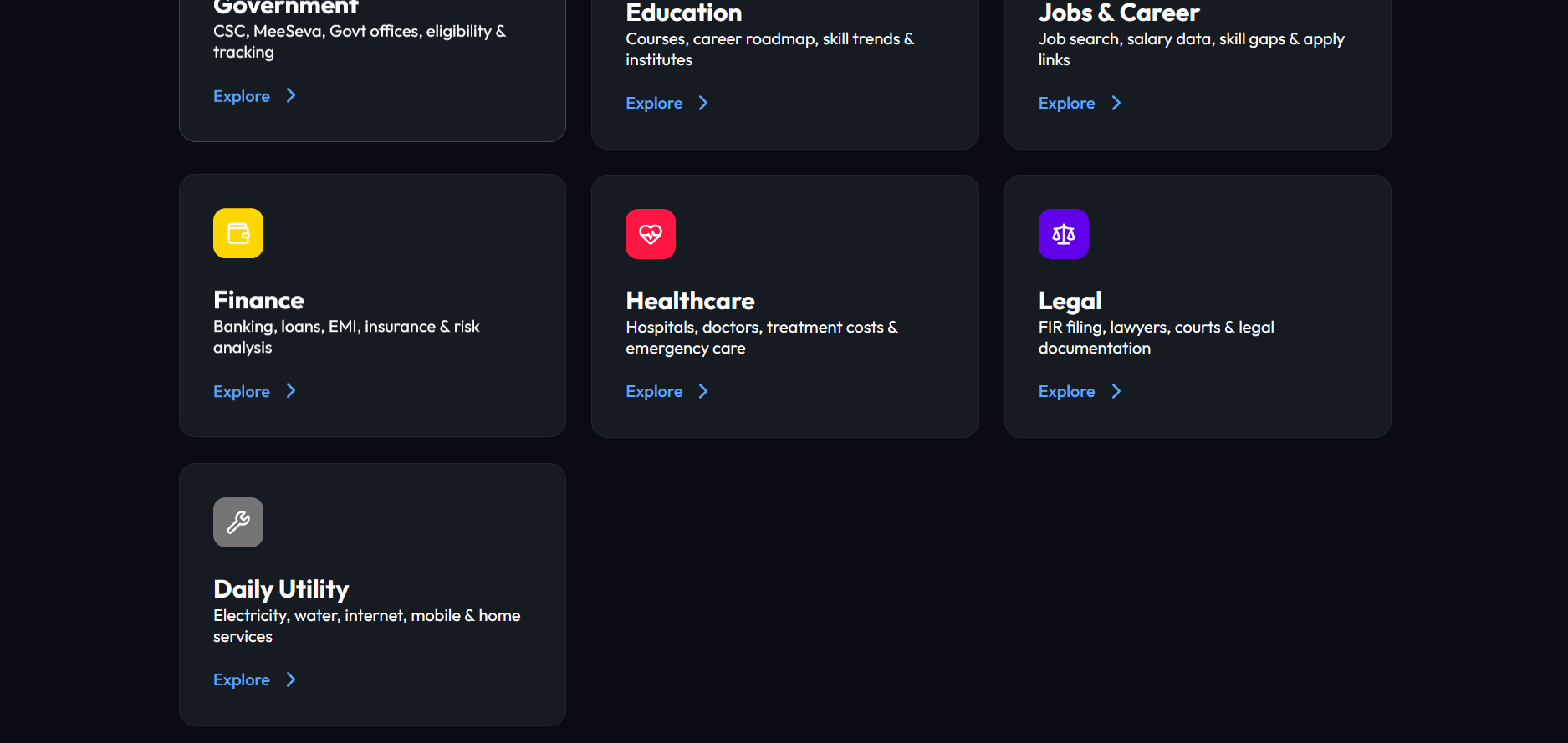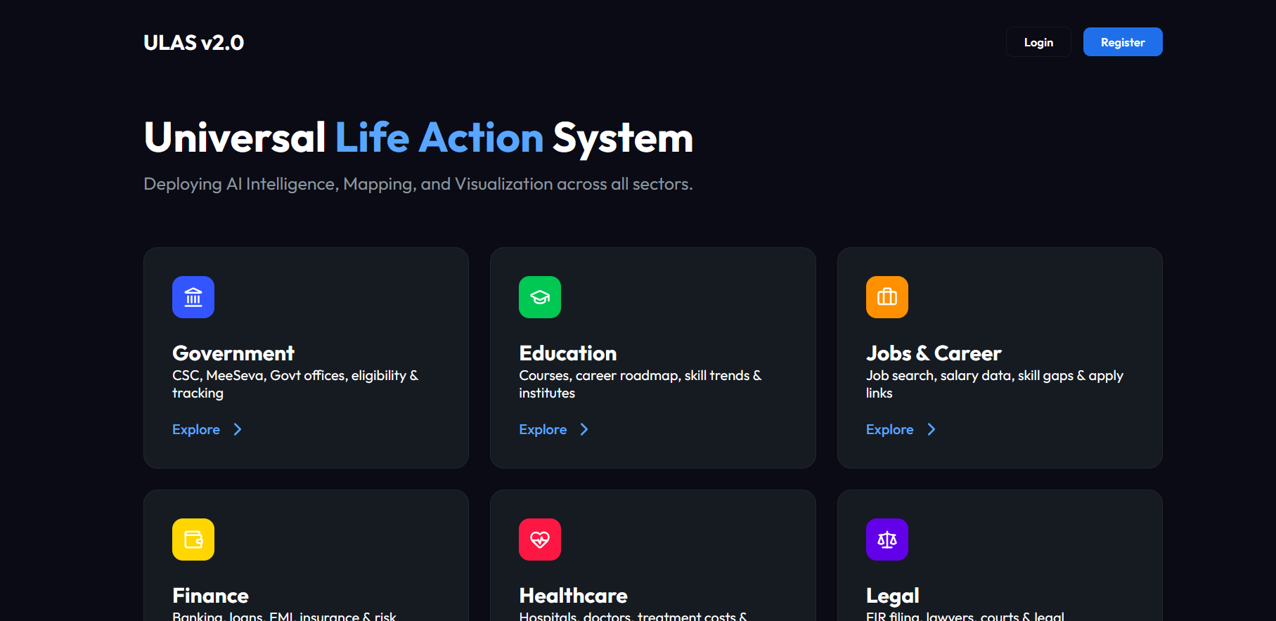 ULAS (Universal Life Action System) is an AI-powered real-world action platform that helps users solve everyday problems through structured, practical execution. Instead of only giving answers, ULAS converts user problems into: simple explanations, best next actions, cost and time estimates, trusted official resources, nearby services, contact details, and step-by-step execution guidance. ULAS works across multiple sectors: Government Services Education Jobs & Career Finance Healthcare Legal Daily Utilities Its biggest strength is that it does not stop at information. It helps users move from confusion to execution. One of our strongest features is Profile-Based Problem Prediction, where ULAS understands whether the user is a student, job seeker, working professional, citizen, or senior user and proactively suggests likely problems, relevant services, and direct support contacts before the user even asks the perfect question.