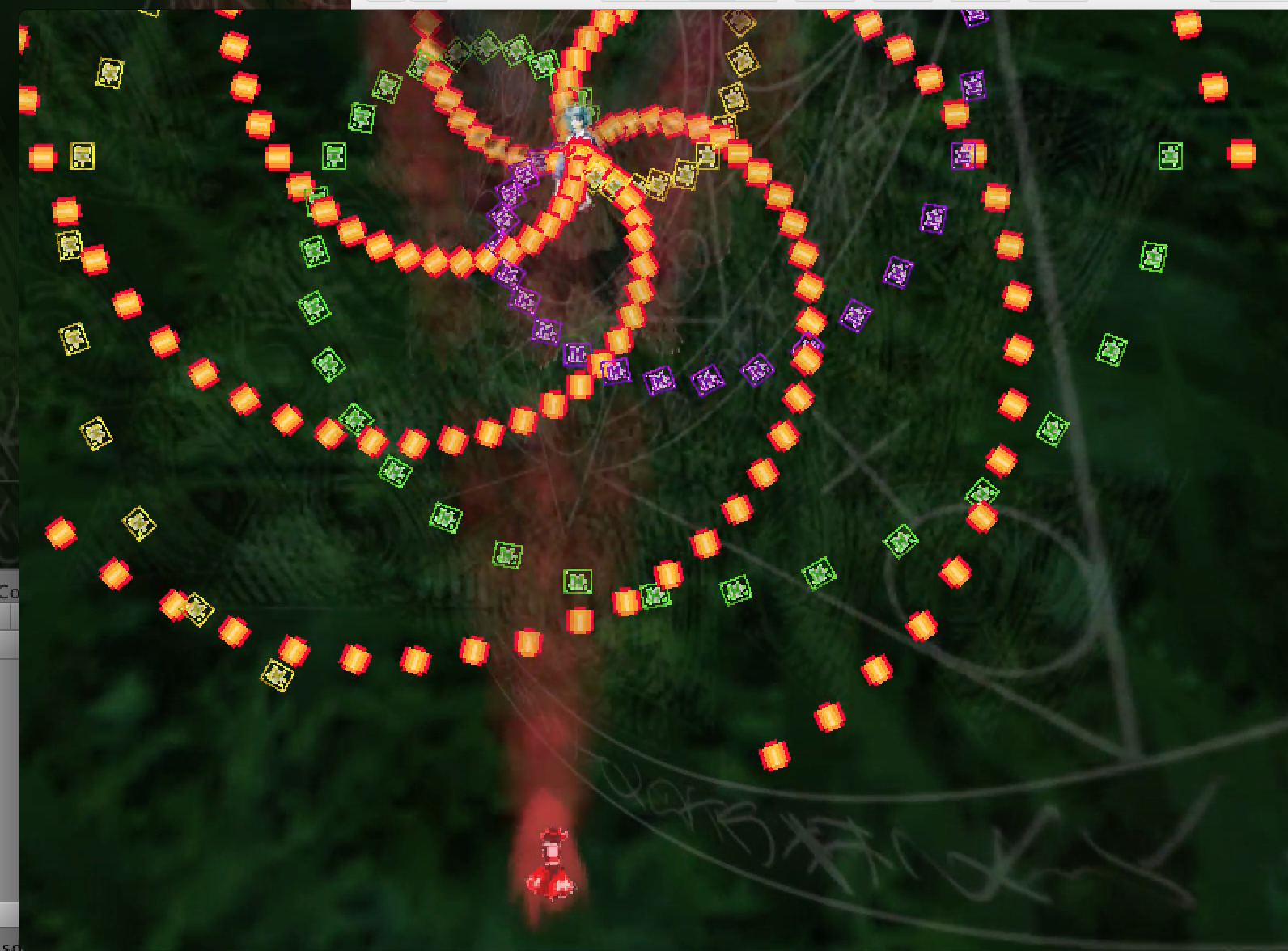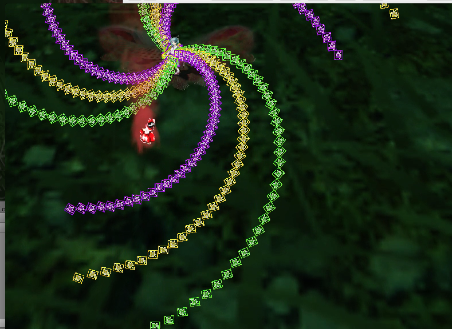 In UBF, bullets move according to rotation and speed. By writing lines in the UBF script file, you can create intricate and beautiful bullet patterns without clutter.