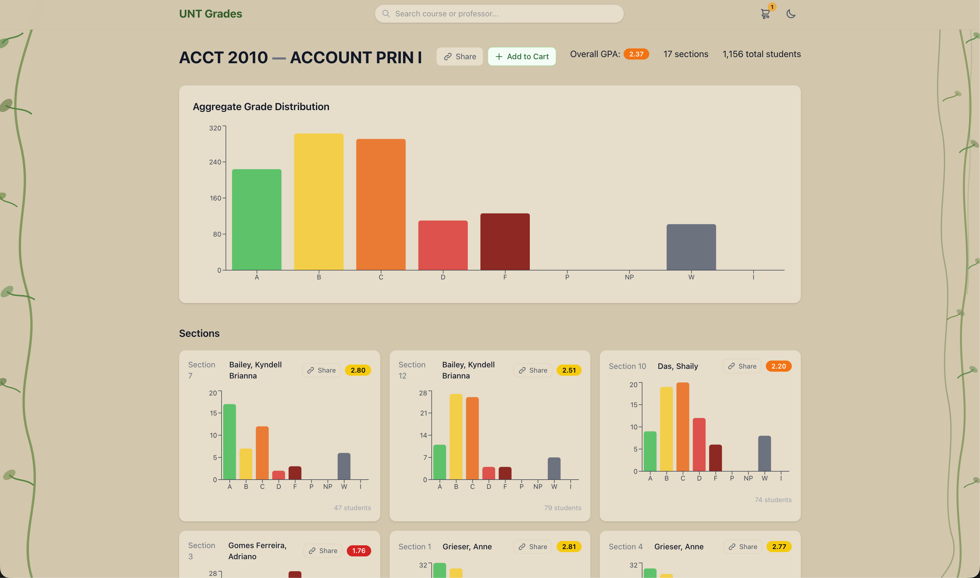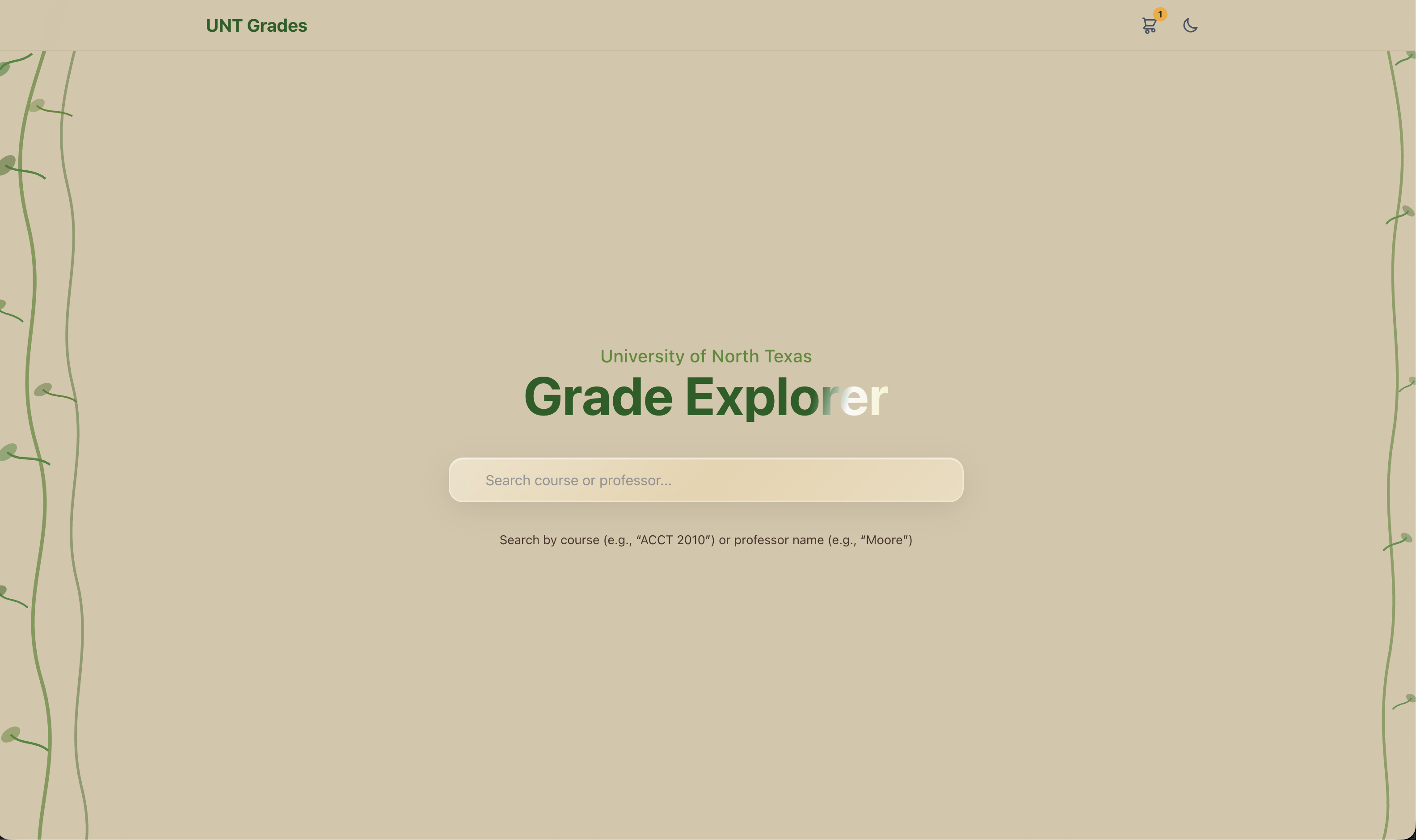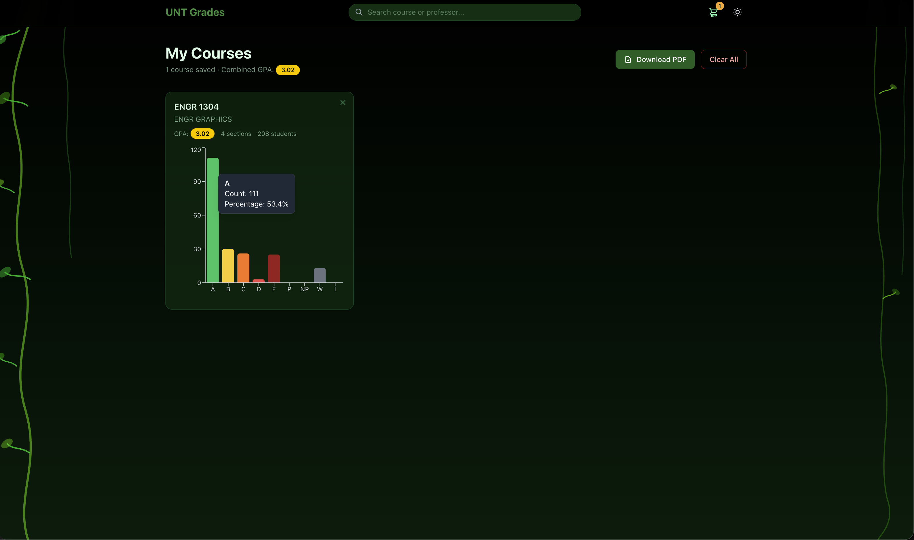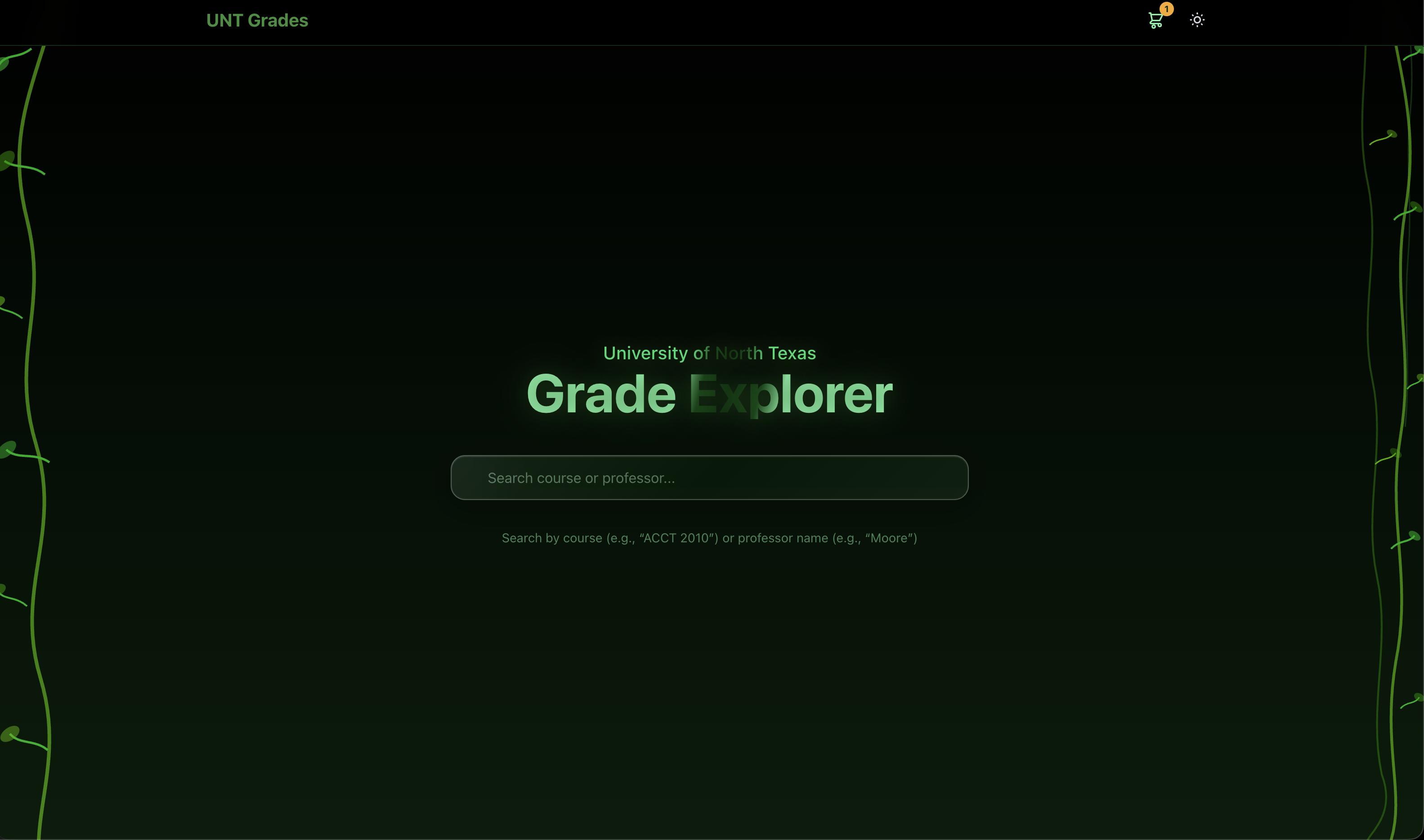 There was a UNT grades a few years ago, but it was outdated and very hard to work with. We made the User Experience easier and updated it with new data (Fall 2025).