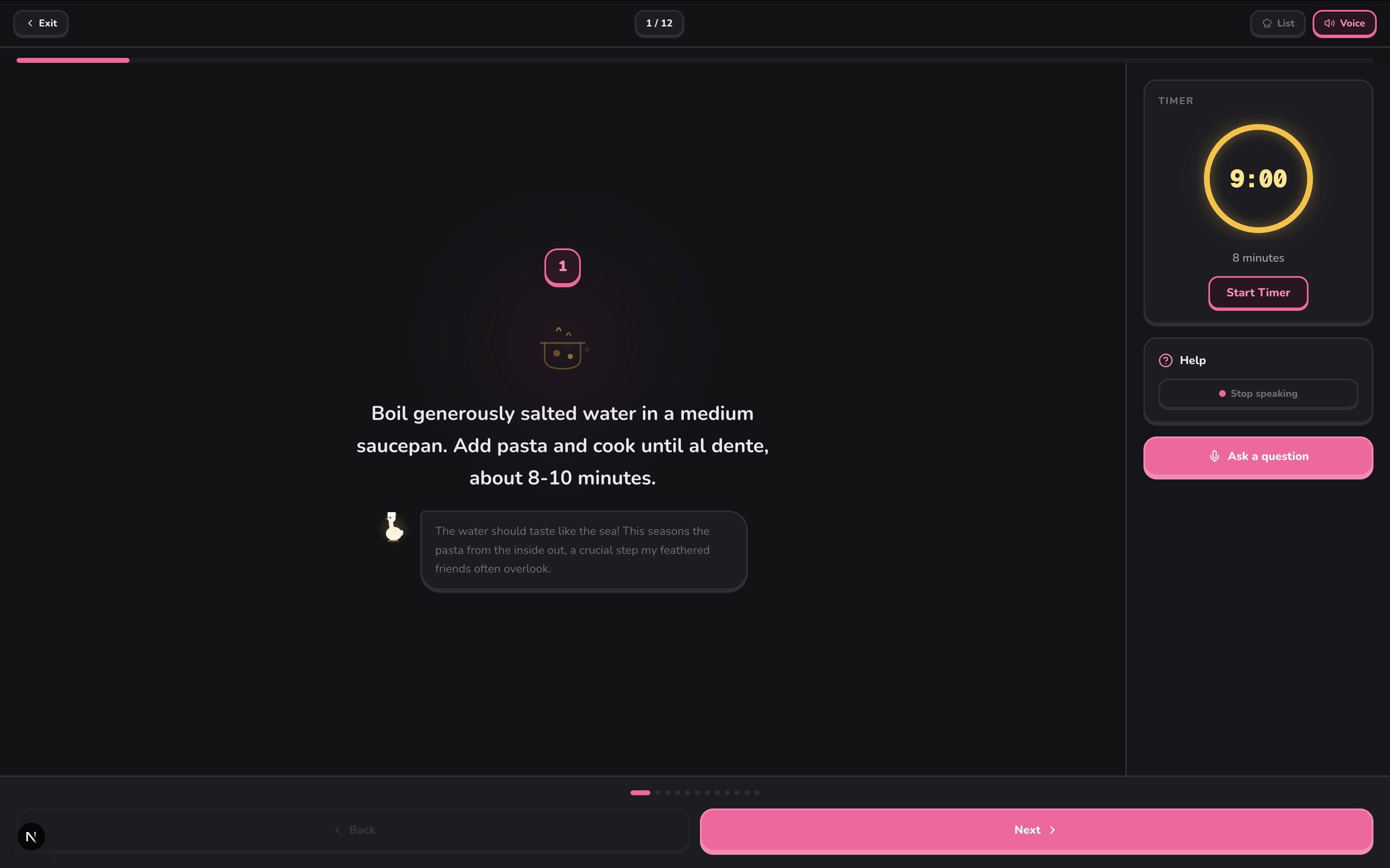 We got practical experience optimizing memory allocation and building client-side recommendation systems in Next.js. We learned how to parse unstructured recipe text to trigger contextual UI animations predictably. Additionally, we figured out how to juggle real-time Web Audio API streams with backend processing, allowing us to keep the front-end thread responsive during the text-to-speech interaction loops.