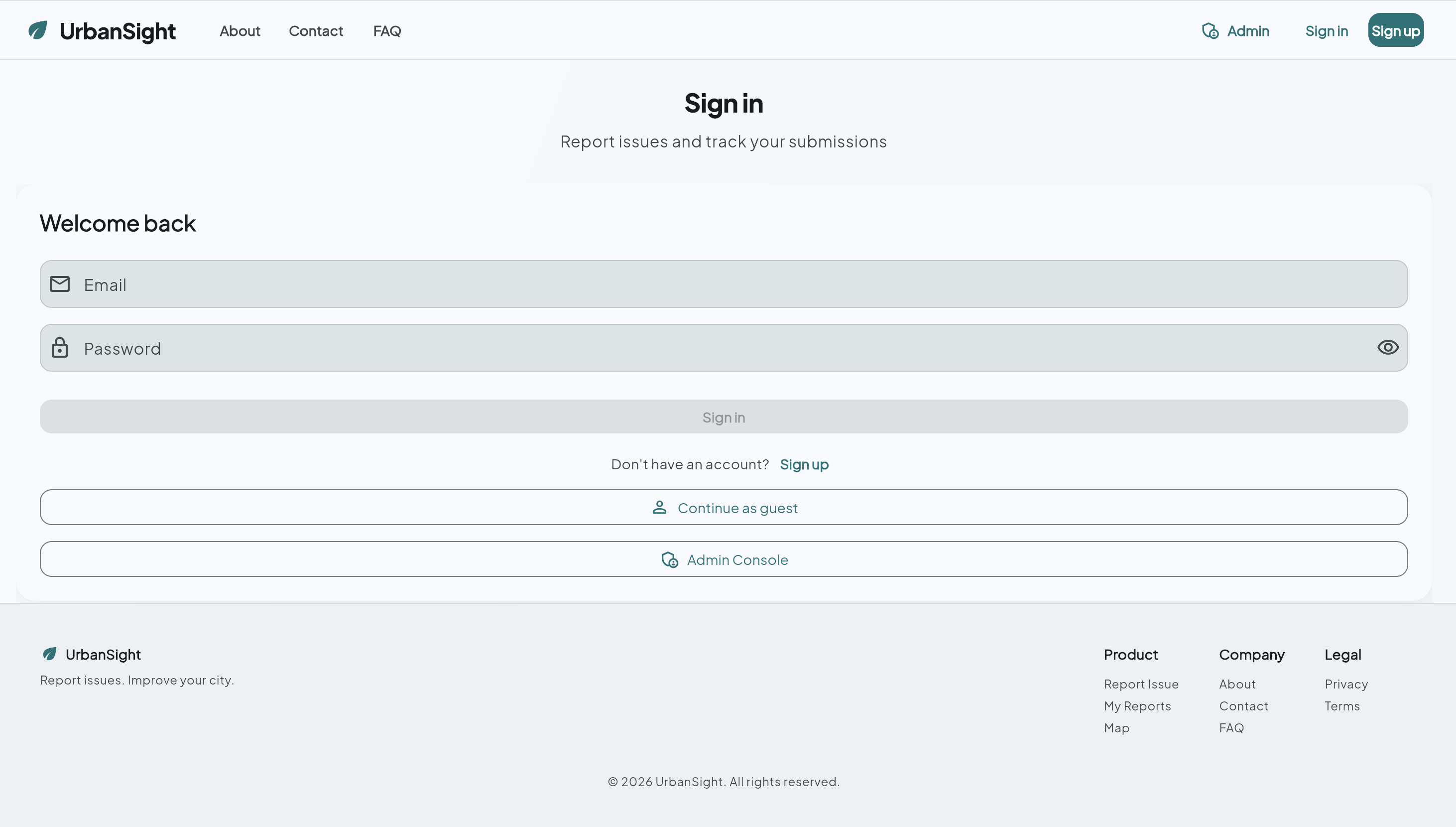 UrbanSight is a smart city issue reporting platform that enables citizens to report urban infrastructure problems quickly and accurately.