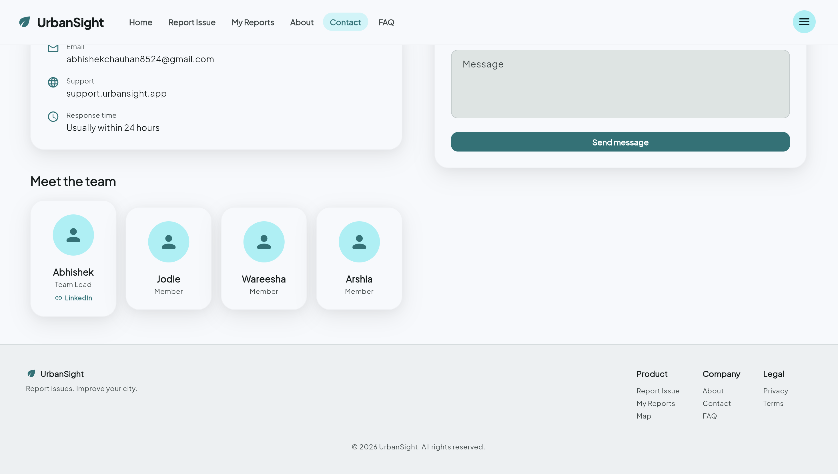 We were inspired to build UrbanSight to close this gap between citizens and municipalities. Our goal was to create a single, transparent platform that empowers people to report issues easily while giving cities clear, actionable data to respond faster. This directly supports UN Sustainable Development Goal 11: Sustainable Cities and Communities.