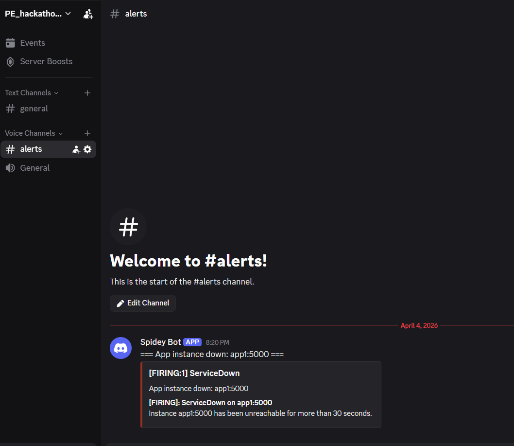- Alertmanager sends incident alerts directly to Discord