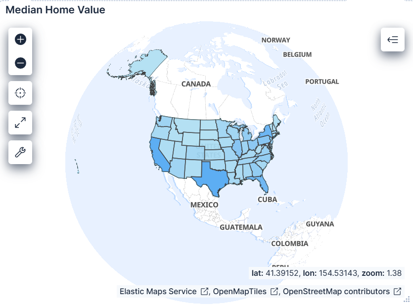 This project retrieves demographic information from the U.S. Census API, loads a GeoJSON file containing the geographical features of all 51 U.S. states, ingests data through the Bulk API, and creates an Elasticsearch index using a predefined mapping. It incorporates both SF1 and CSA datasets to provide population, income, and household statistics. The project also includes a Model Context Protocol (MCP) server for querying census data stored in Elasticsearch, with helper functions, MCP resources, MCP tools, and MCP prompts.