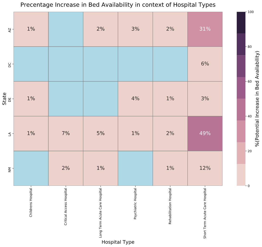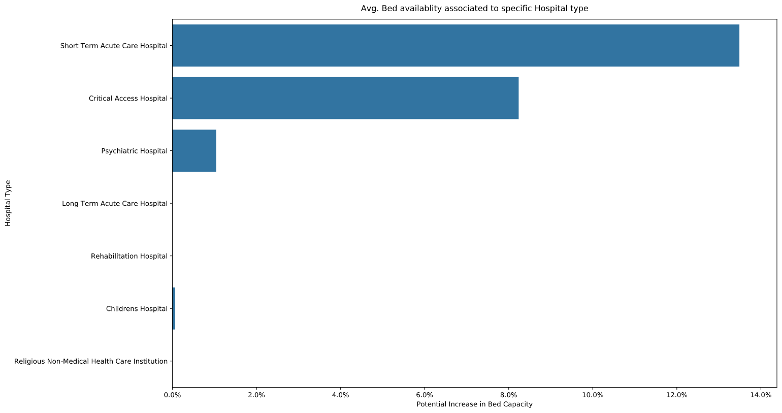 I'm proud of the findings that I have from the data analysis i.e. Historical Bed Utilization Rate, Poverty Level, Potential available in Bed capacity are key features that can help forecast the staffing needs of health workers (doctors, nurses, etc). The staffing needs to a specific hospital type can be scored based on the availability enabling counties in poverty to be better served.