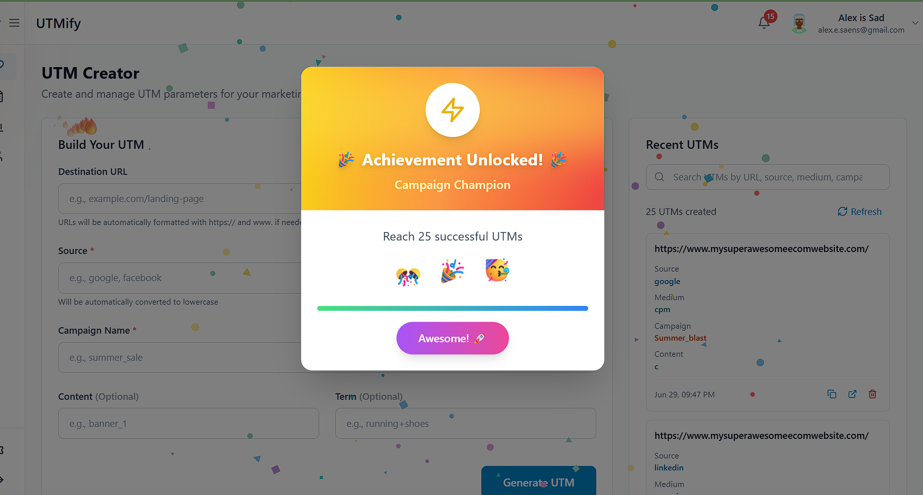 UTMs are the essential breadcrumbs that help marketers track campaign performance, but creating and managing them is incredibly boring and operationally challenging. Every marketing team has their own chaotic approach to UTM creation, leading to messy analytics and frustrated marketers. I thought - what if we could gamify the most mundane part of marketing? What if we could turn UTM creation into an engaging, competitive experience that teams actually enjoy?
