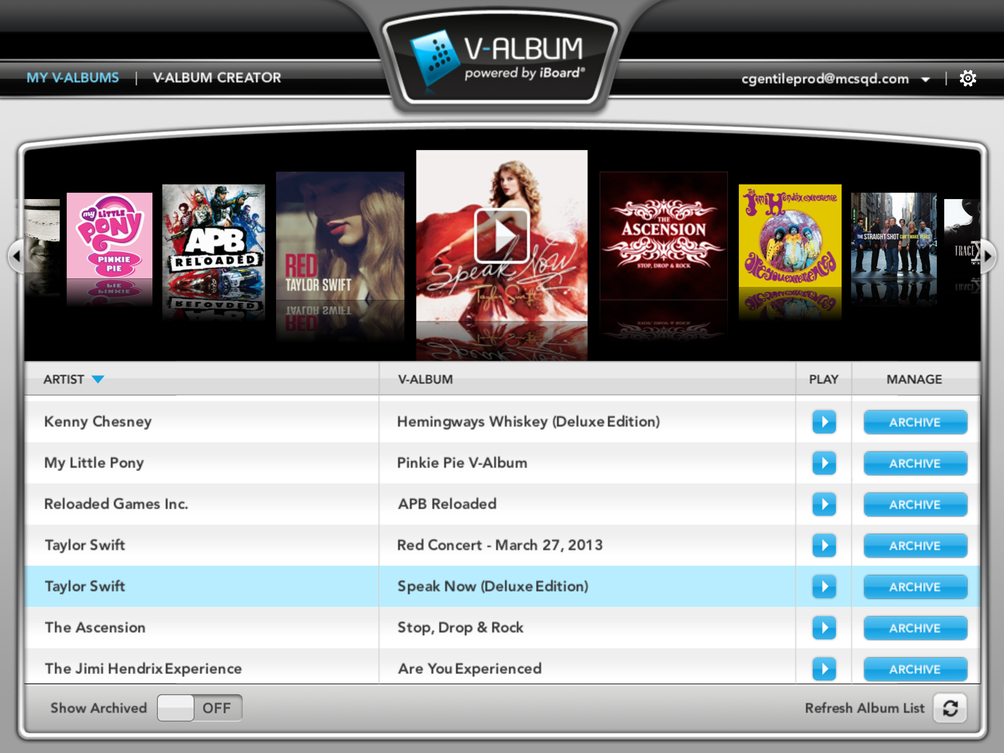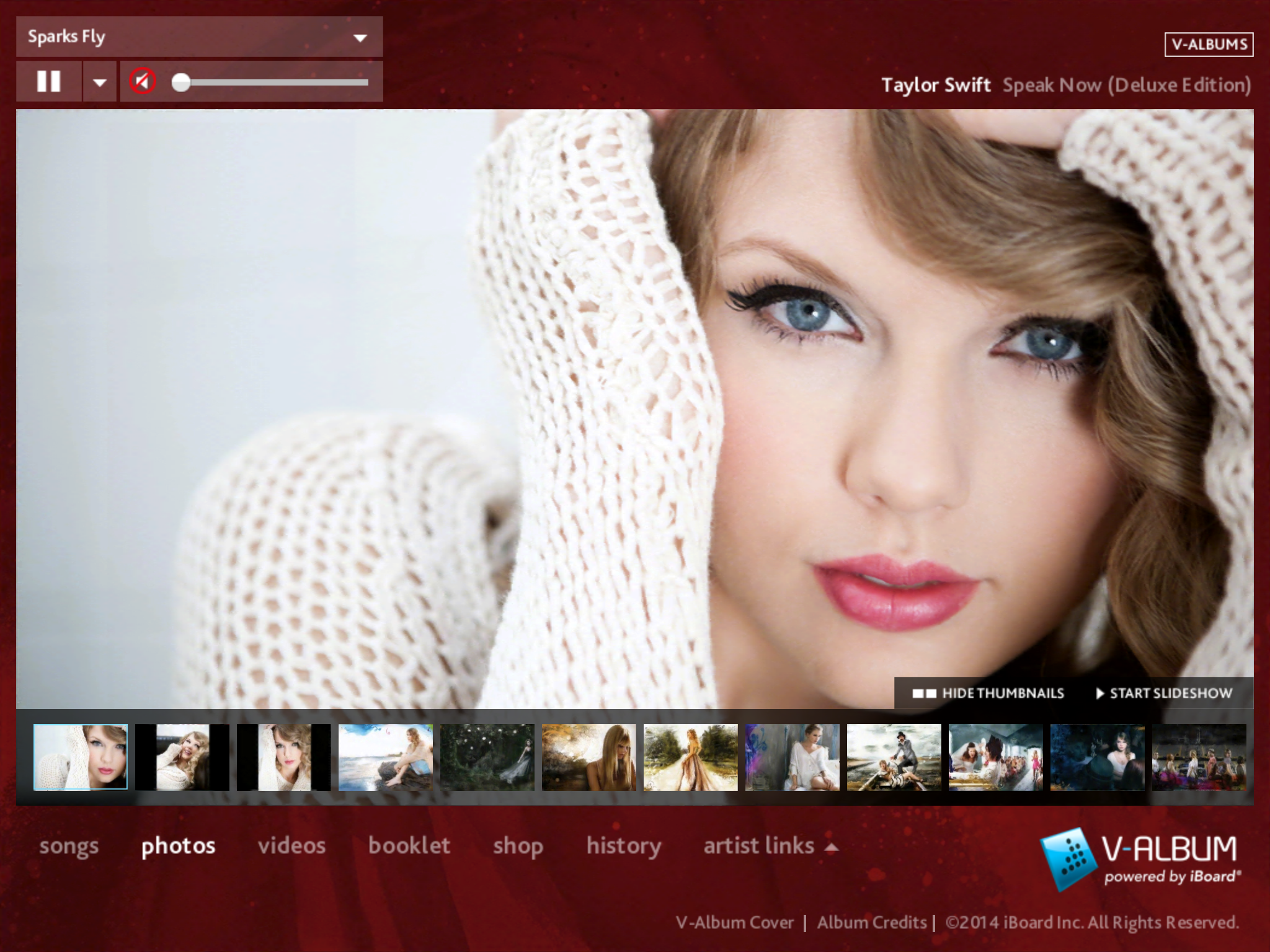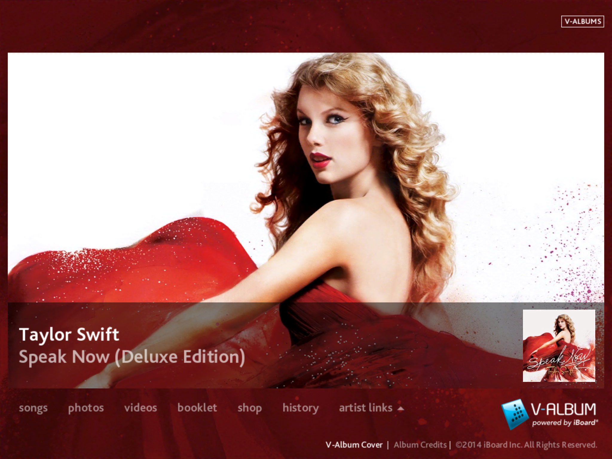 The V-Album iBoard® is a patented music product, which uniquely bundles an album’s music tracks, lyrics, photos, videos, merchandise, concert tickets, social media, and much more, into a single, immersive and interactive application. All music tracks are high-quality mp3 files, accessible from outside the V-Album application and exportable to any hardware music player, such as iPods, iPhones, iPads, Walkmans, etc., along with an iTunes auto import feature. Every major label has approved the format and security of the V-Album platform, and over the past 2 years, over 50 V-Album iBoard products have been produced for all major record labels and top selling artists such as, Taylor Swift, Katy Perry, John Mayer, Blake Shelton, Trace Adkins, Kenny Chesney, Jimi Hendricks, Sheryl Crow, and others. The V-Album™ iBoard® utilizes a custom Cloud based Account System that allows users to install any purchased V-Album product on up to 5 devices, including the V-Album iBoard iPad app. All V-Albums are for sale to the public at https://valbum.com/, or integrated into any retailer website or app, including utilization of the Cashtie Barcode.