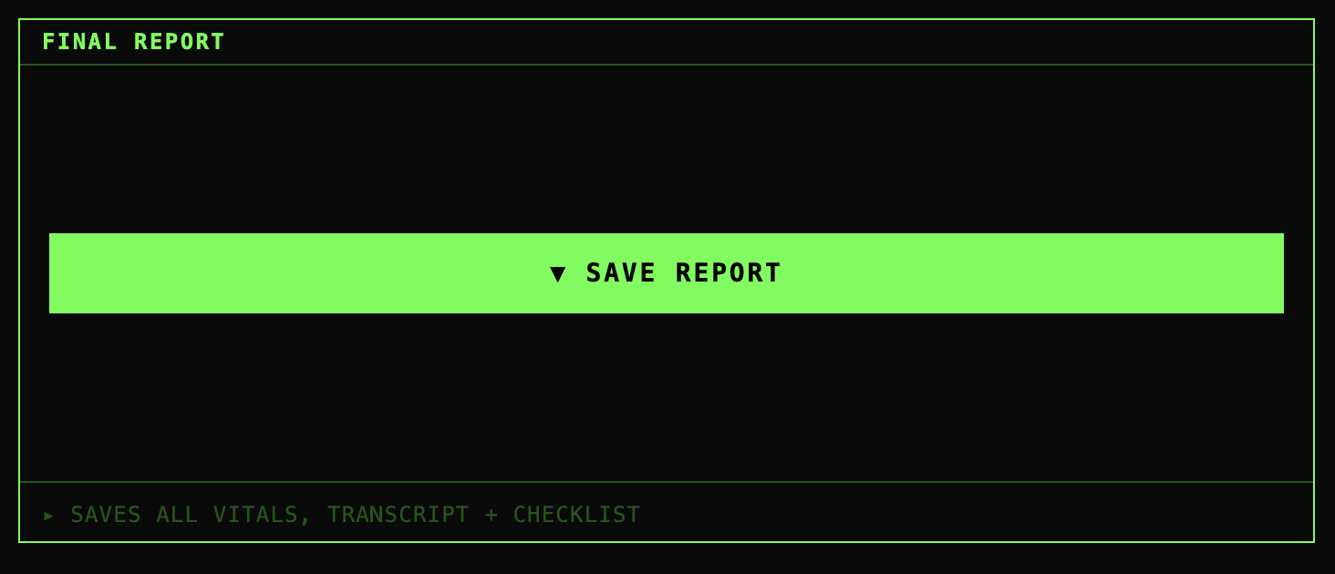 - Frontend updates vitals, checklist, and transcript in real time simultaneously