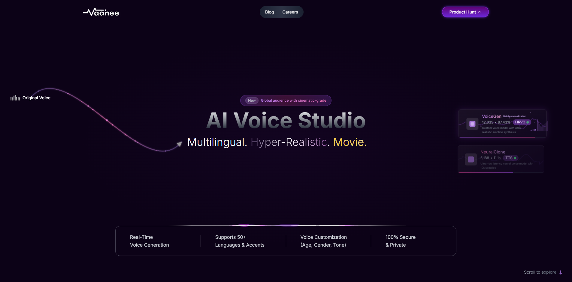 The platform is a comprehensive generative voice AI toolkit, serving as an indispensable resource for creators and storytellers. Its key feature revolves around the creation of highly realistic human-like voiceovers within seconds. What sets Vaanee AI apart is its adaptability, allowing users to fine-tune voice characteristics such as pitch, tone, and speed, ensuring a perfect match with the intended narrative.