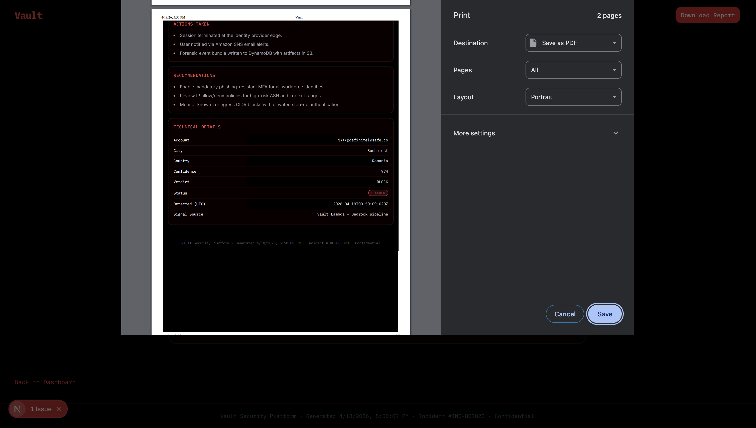 Raise your hand if you've gotten a "suspicious login detected" email and opened it three hours later. By then the attacker was already done. Security tools send alerts. Nobody acts fast enough. We built Vault because that gap between detection and response is where the damage happens.