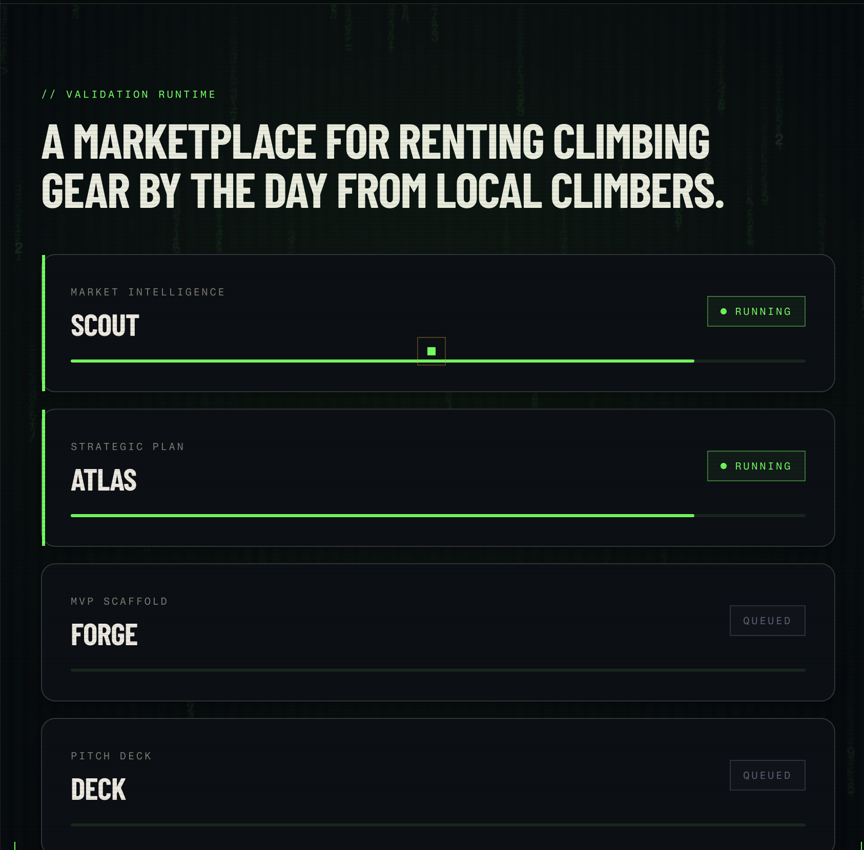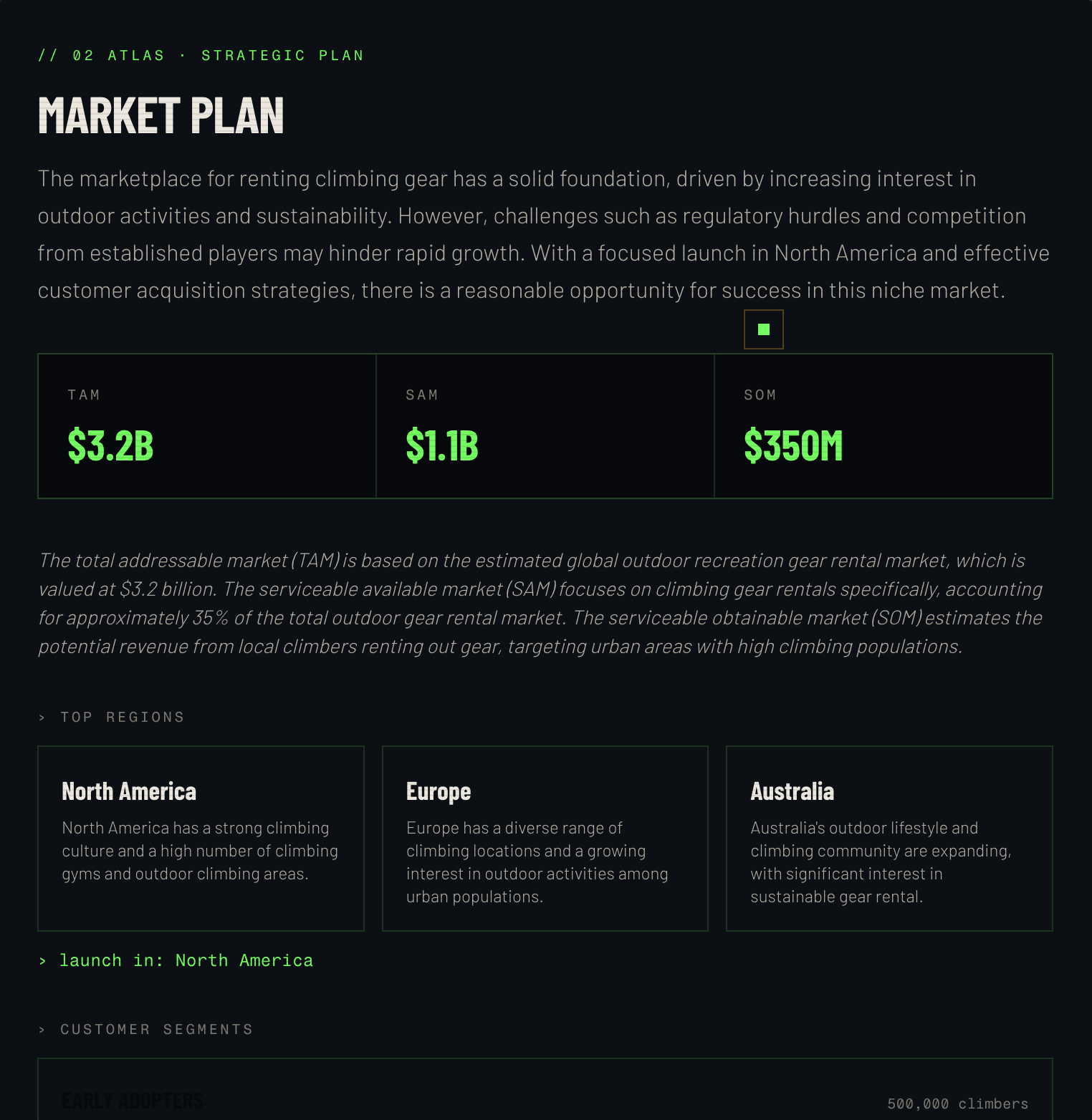 Atlas sizes your TAM/SAM/SOM with customer segments. Forge builds