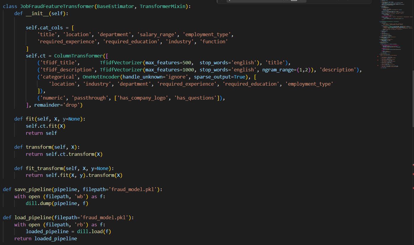 Job scams are becoming increasingly common on online job boards, and many look completely legitimate at first glance. As students entering the job market, we wanted to build a tool that helps users avoid fraudulent postings and apply with confidence. We were also inspired by the need for AI systems that are not only accurate but explainable.