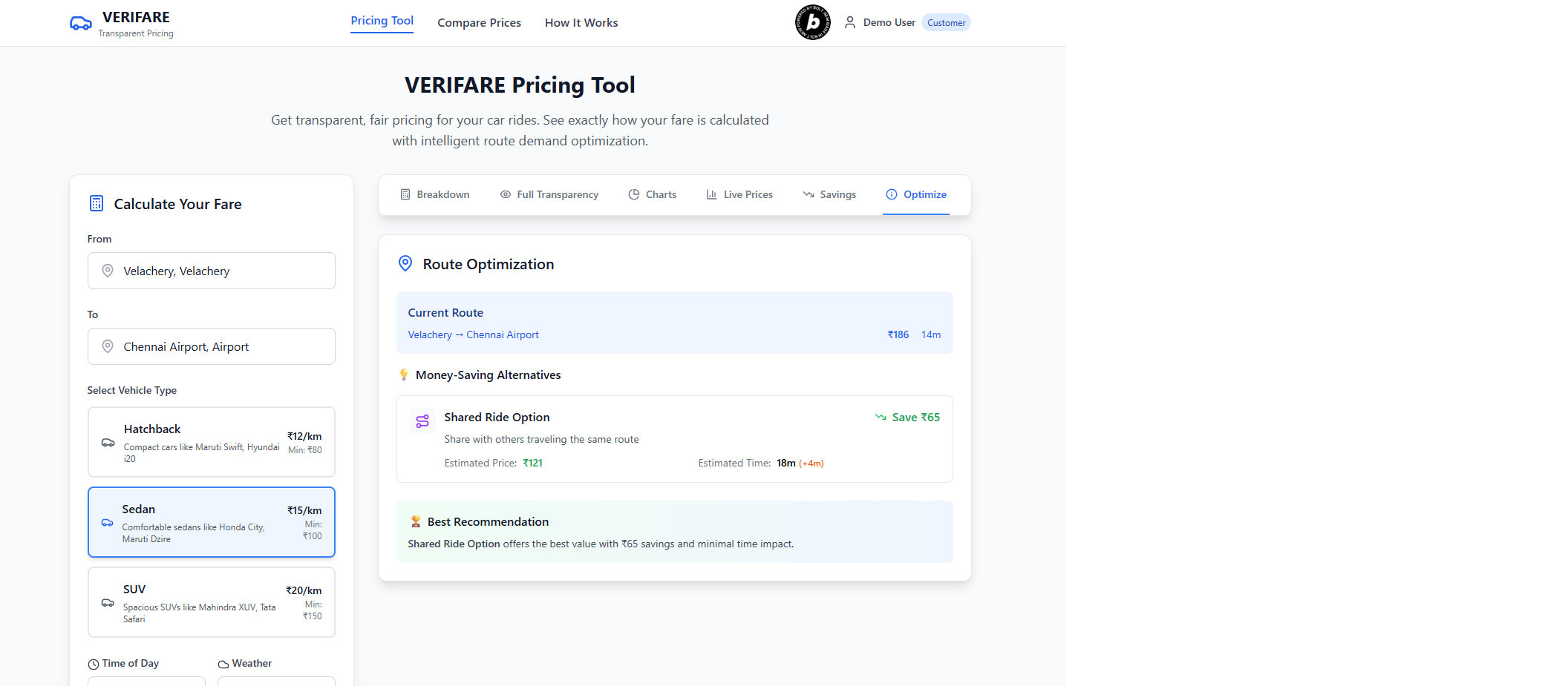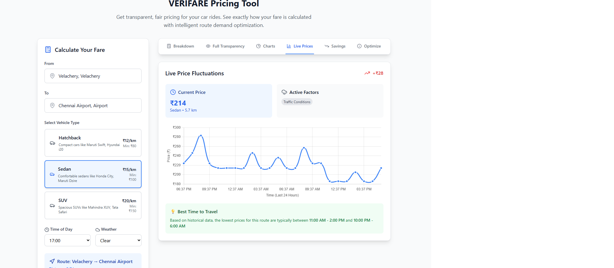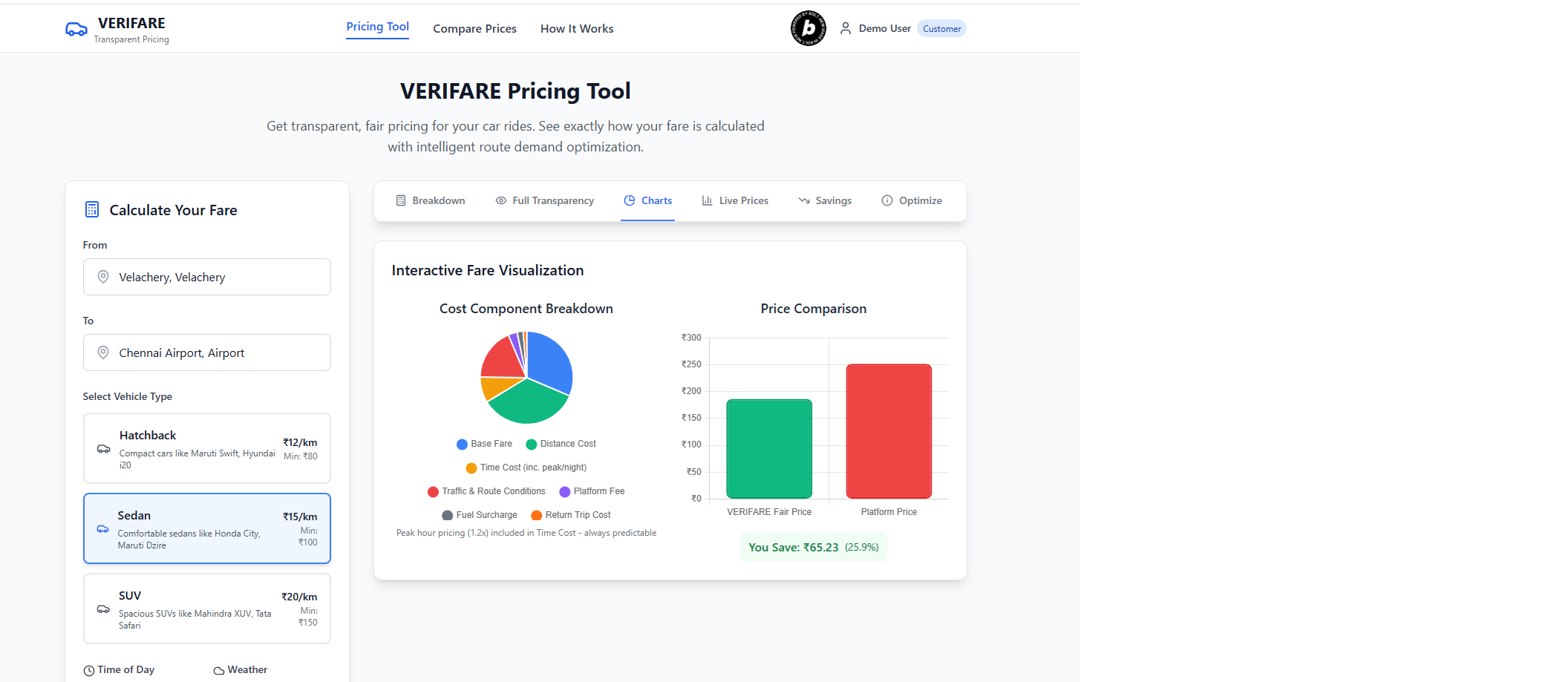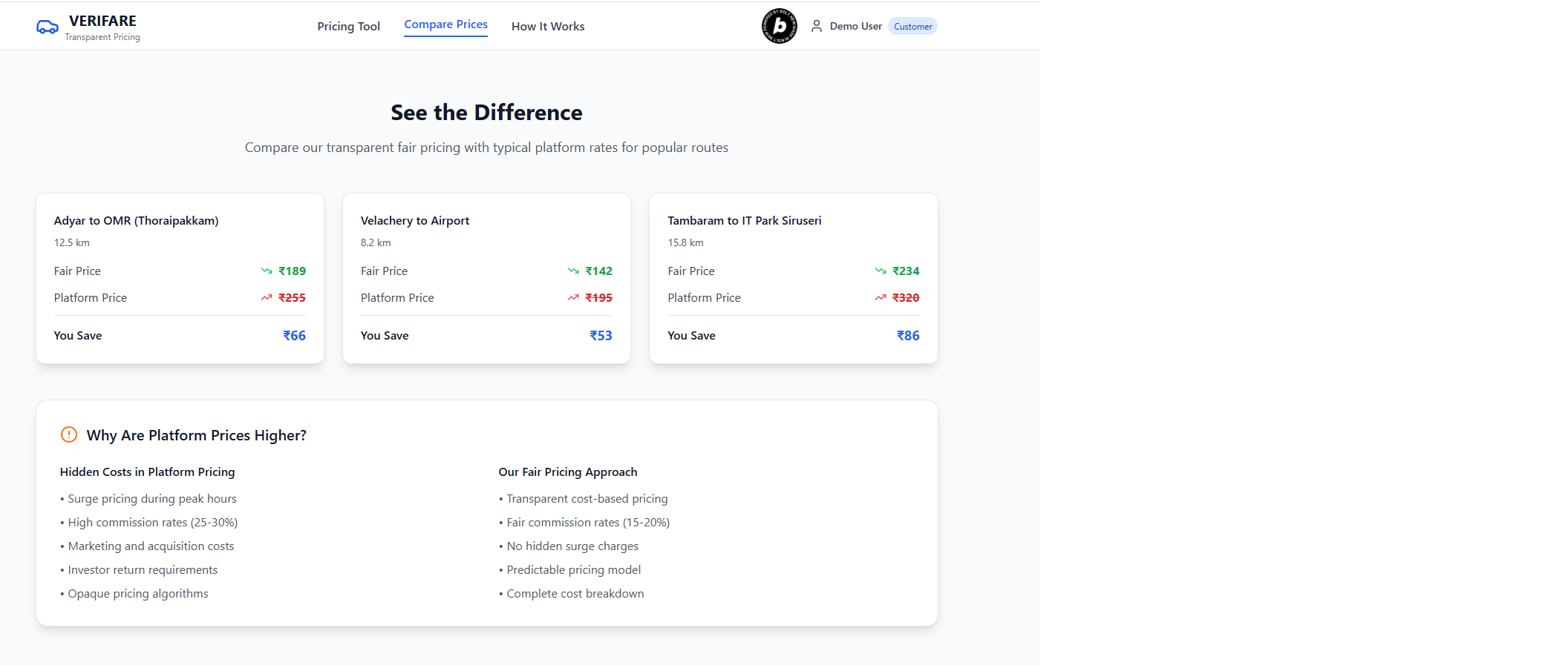 Complete Transparency System Unlike the surge pricing in the existing platforms, we fix the surge at a specific %. But the intelligence brings in the dynamic aspects which has to be catered on each request. But the distinction is we are transparent to spell out in the bill.